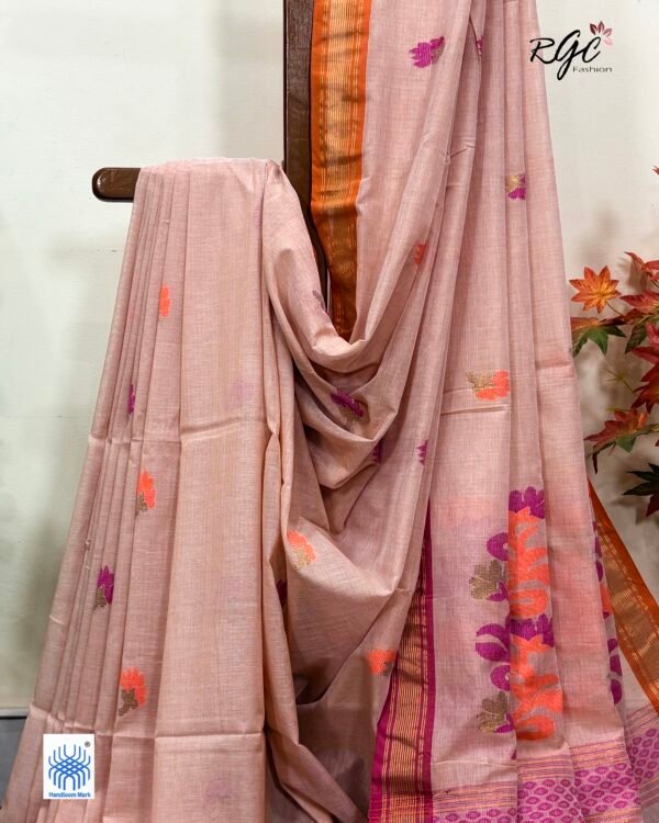 Redish Beige Handloom Premium Cotton Jamdani Saree