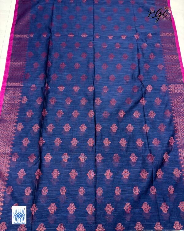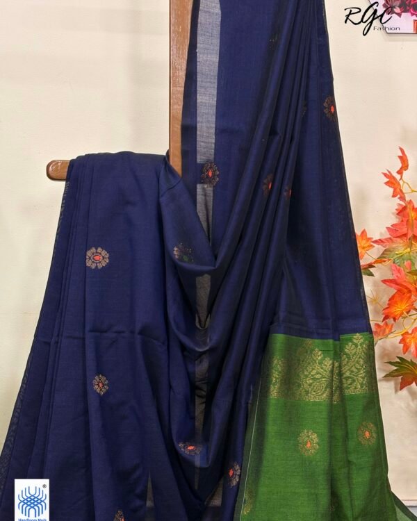 Navy Blue Handloom Cotton Silk Benarasi Saree
