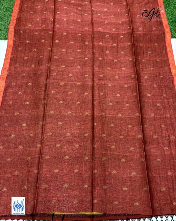 Rust Paisly Buta Organic Linen Jamdani Saree