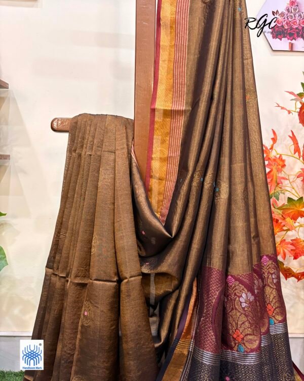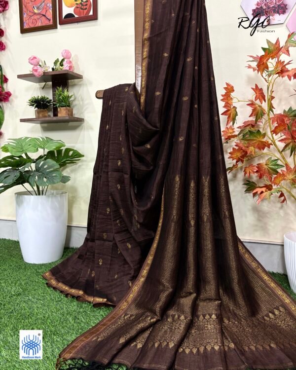 Chocolate Paisly Buta Organic Linen Jamdani Saree