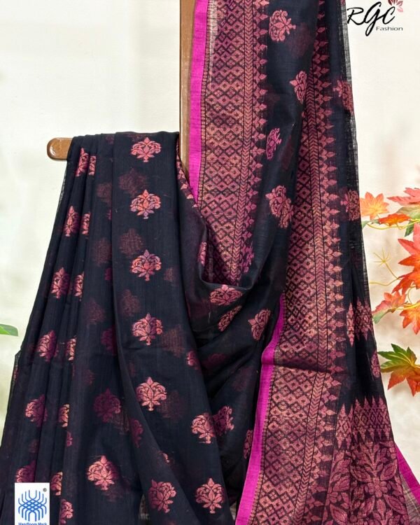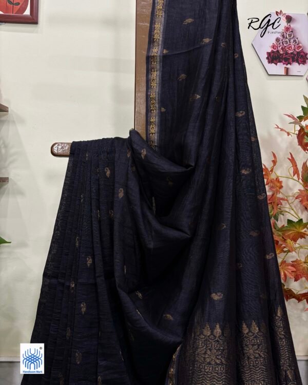 Black Handloom Cotton Silk Benarasi Saree