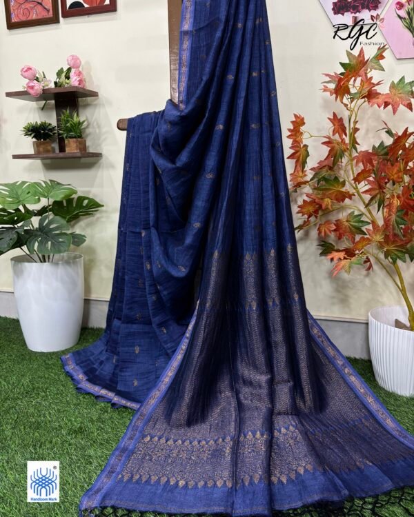 Blue Pure Linen Plain Saree