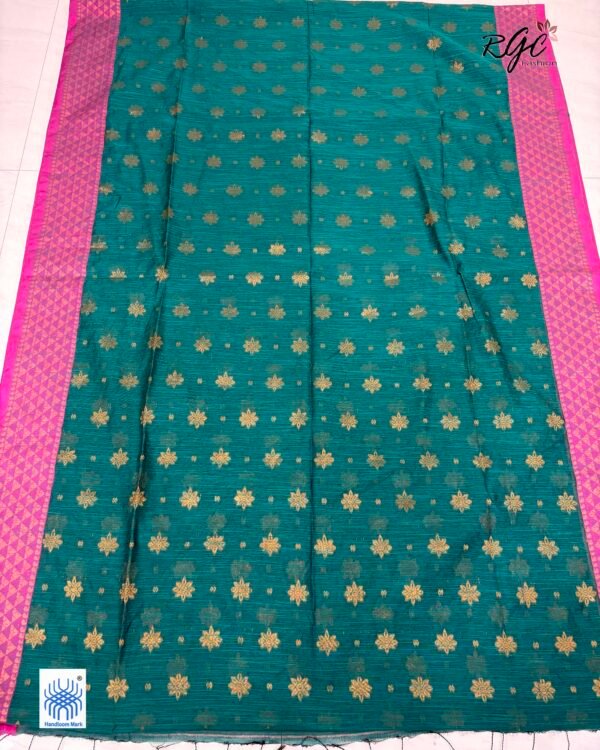 Greenish Blue Handloom Premium Acrylic Buti Jamdani Saree