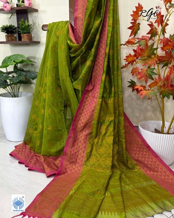 Olive Handloom Cotton Silk Benarasi Saree