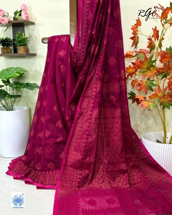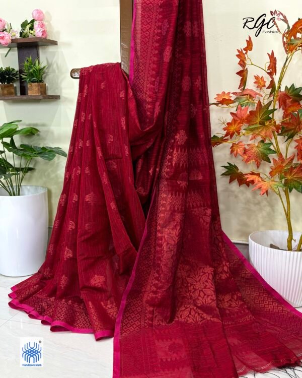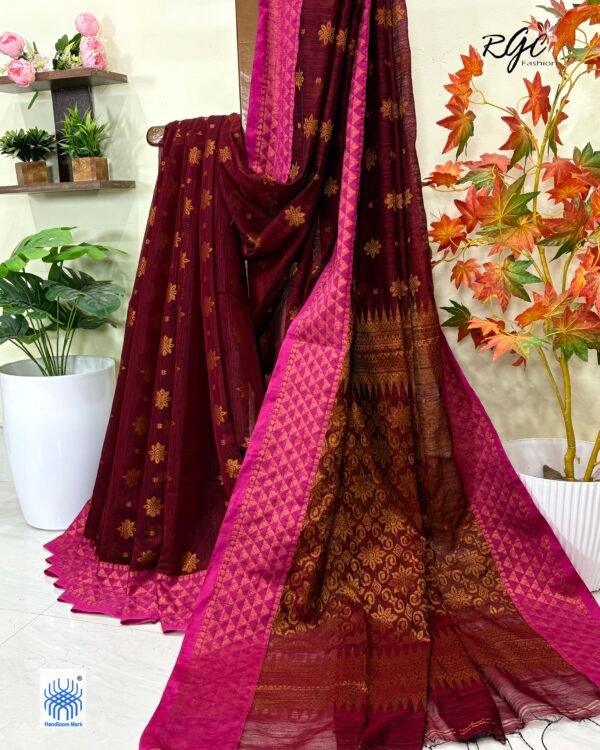 Maroon Paisly Buta Organic Linen Jamdani Saree