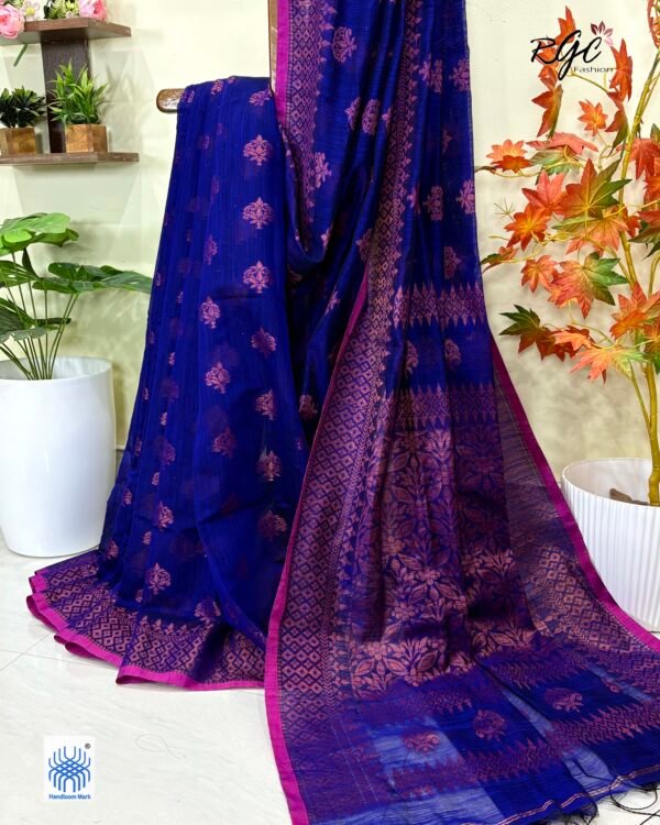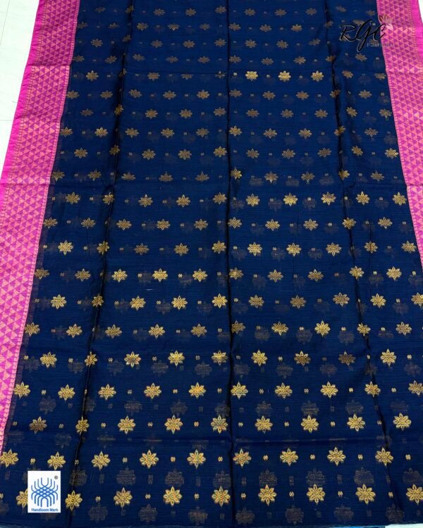 Dark Blue Handloom Premium Acrylic Buti Jamdani Saree