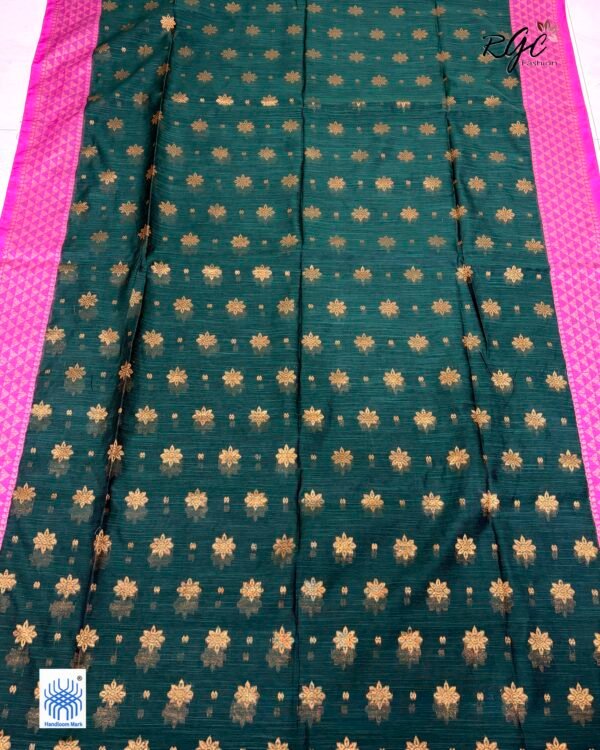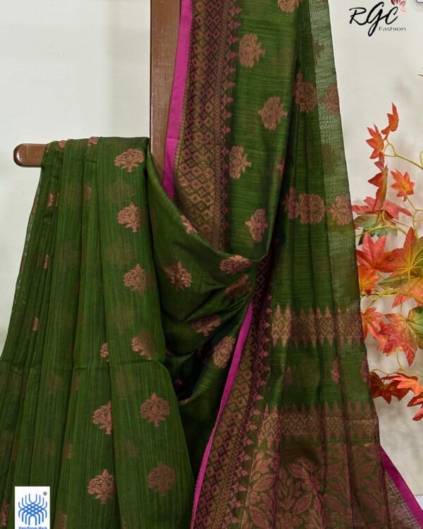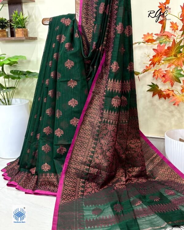 Bottle Green Handloom Cotton Silk Benarasi Saree