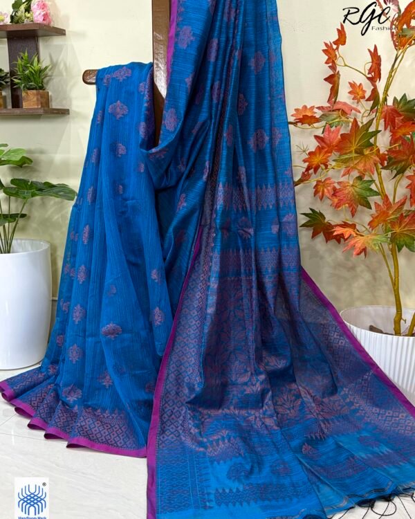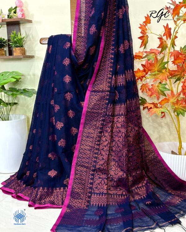 Blue Paisly Buta Organic Linen Jamdani Saree