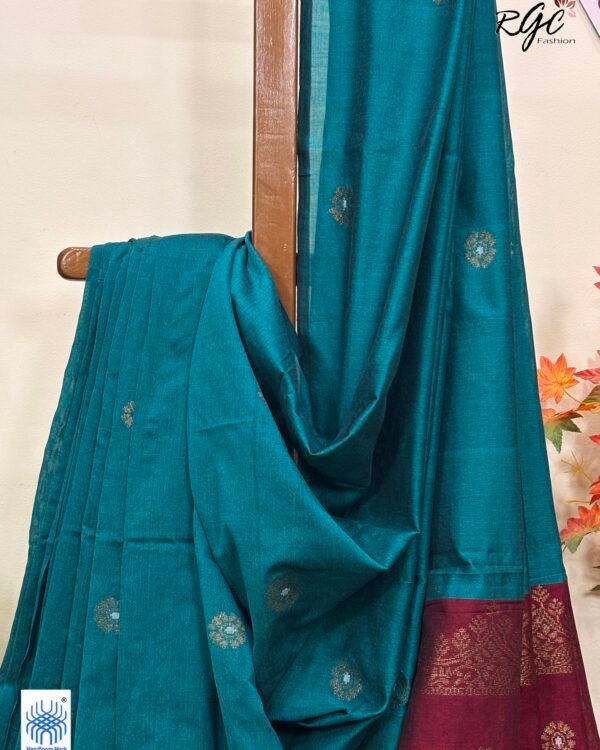 Dark Firozi Handloom Premium Acrylic Buti Jamdani Saree