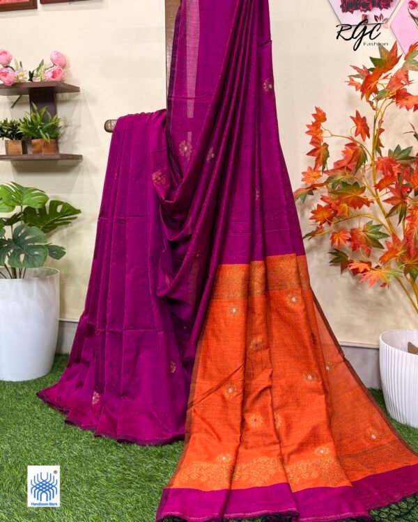 Rani Pink Handloom Premium Acrylic Buti Jamdani Saree