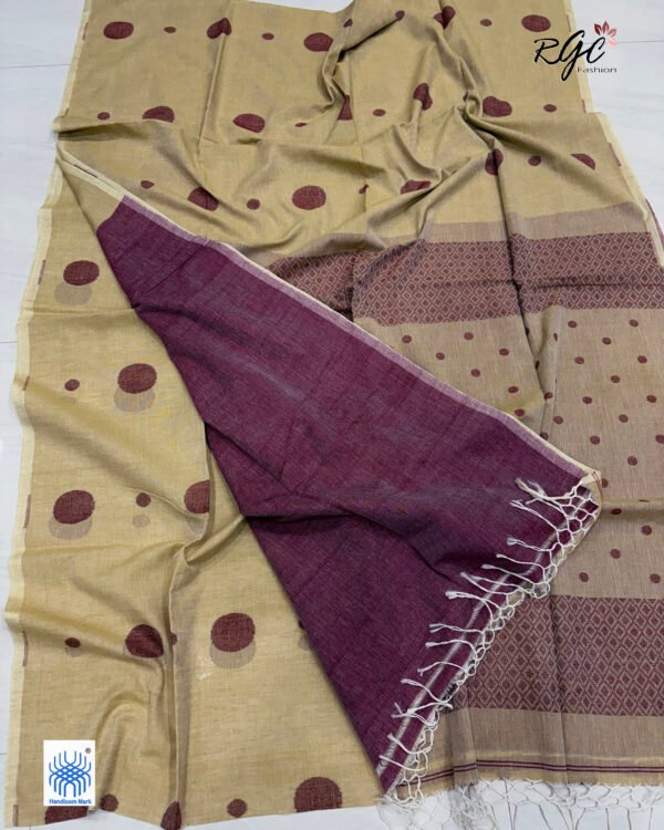 Dark Beige Handloom Mulmul Cotton Polka Dot Jamdani Saree