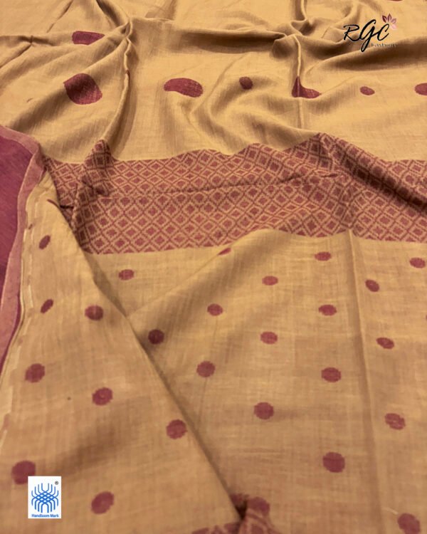 Light Brown Handloom Mulmul Cotton Polka Dot Jamdani Saree