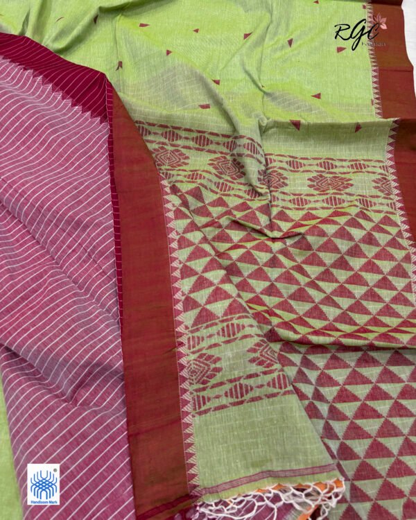 Light Green Handloom Mulmul Cotton Triangle Jamdani Saree