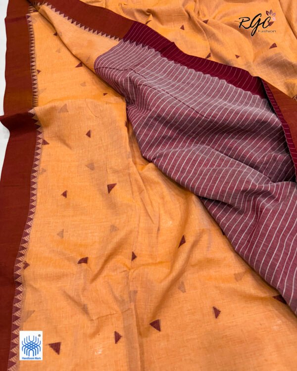 Pastle Orange Handloom Mulmul Cotton Triangle Jamdani Saree