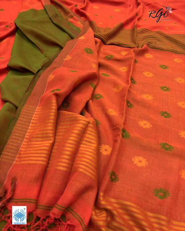 Orange Handloom Mulmul Cotton Dhakai Jamdani Saree