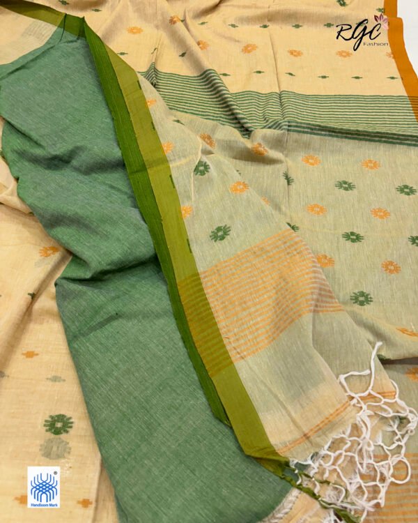 Beige Handloom Mulmul Cotton Dhakai Jamdani Saree