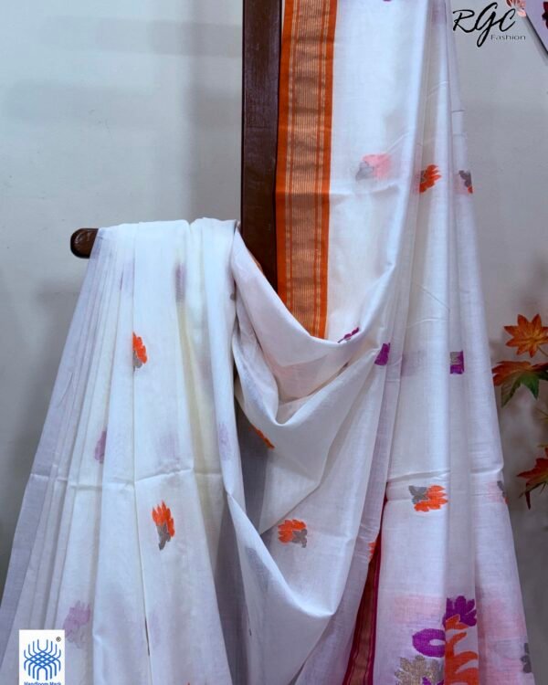 Redish Beige Handloom Premium Cotton Jamdani Saree
