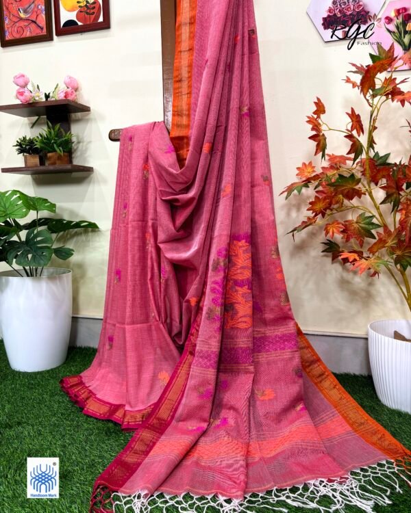 Dusty Rose Handloom Premium Cotton Jamdani Saree