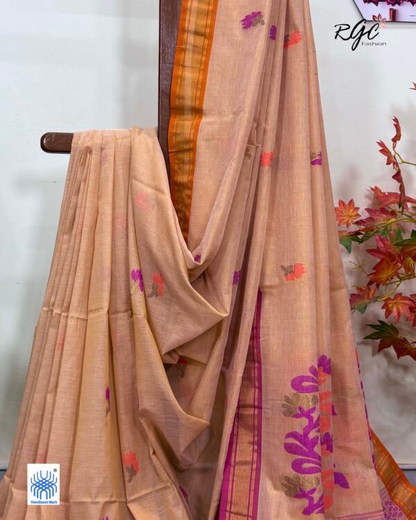 Pinkish Tan Handloom Premium Cotton Jamdani Saree