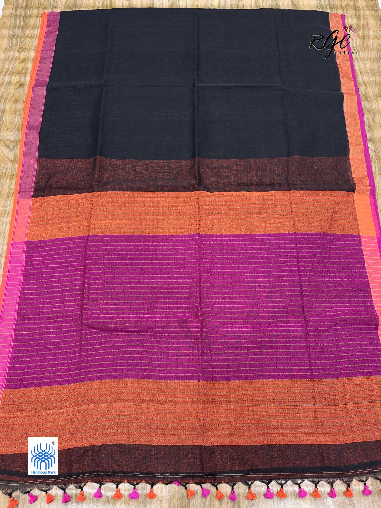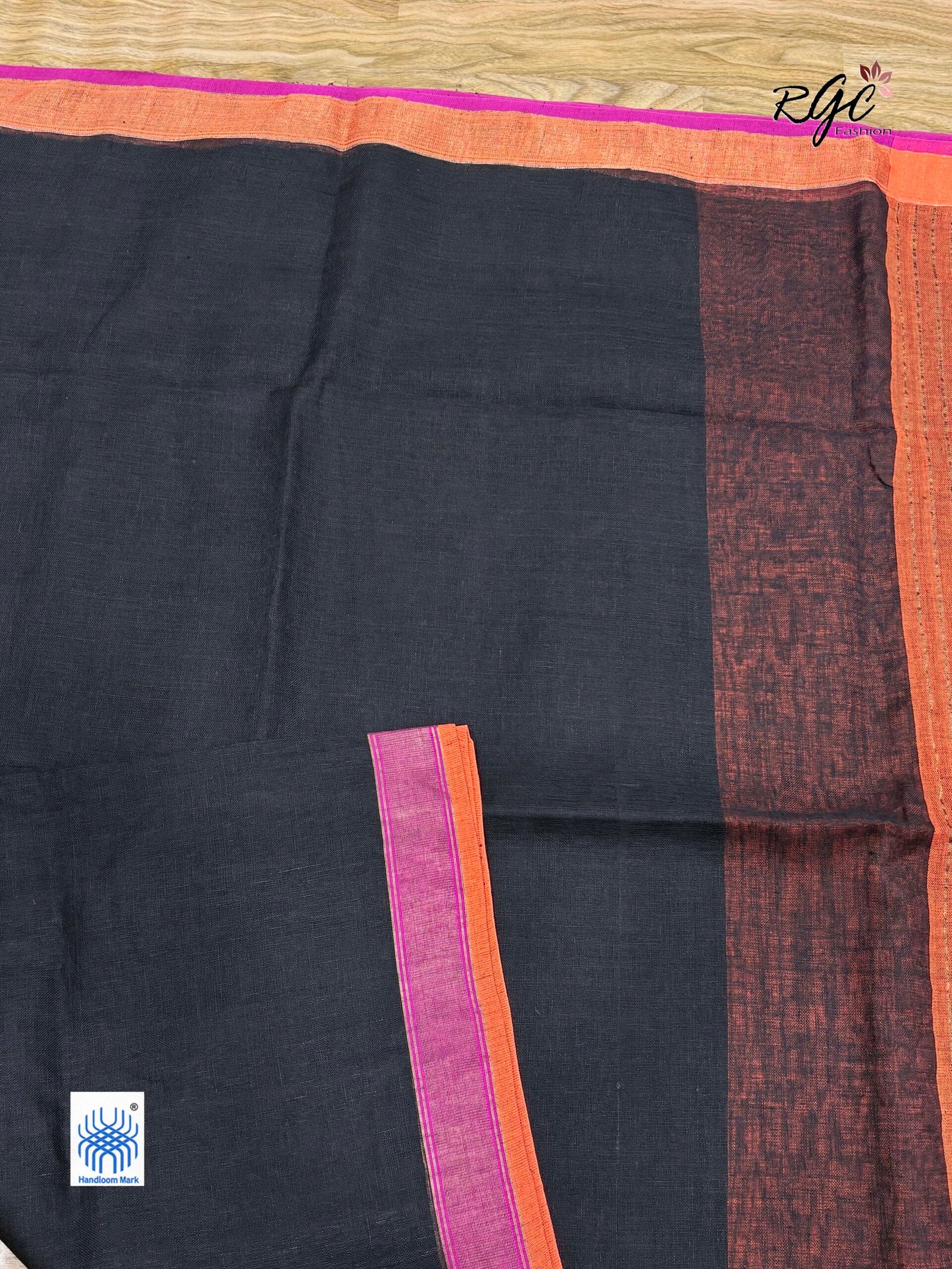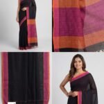 Black Pure Linen Plain Saree