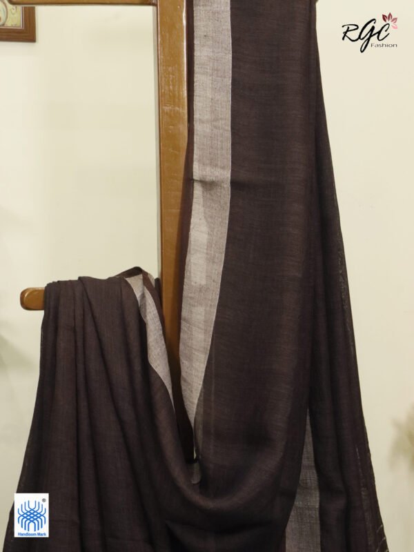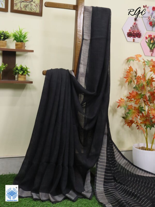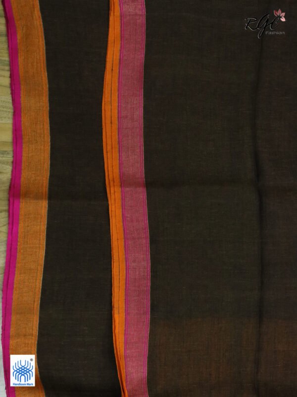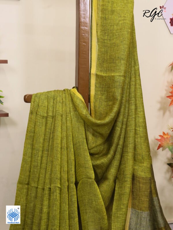 Blackish Yellow Linen Palin Golden Zari Border Saree