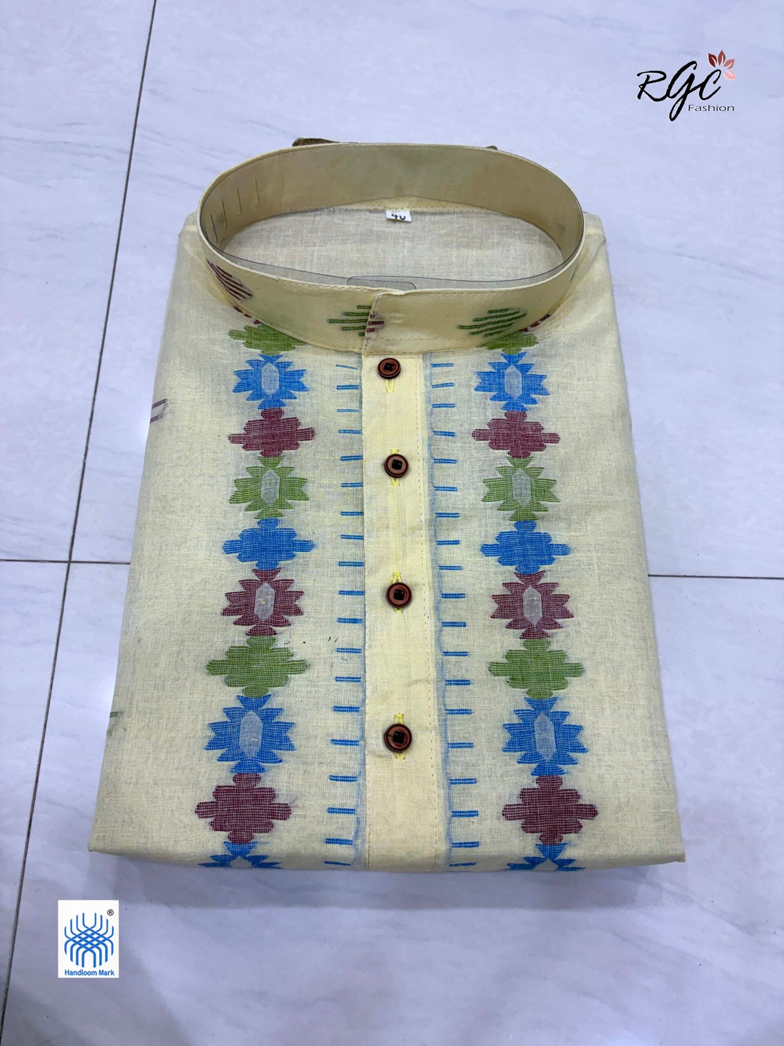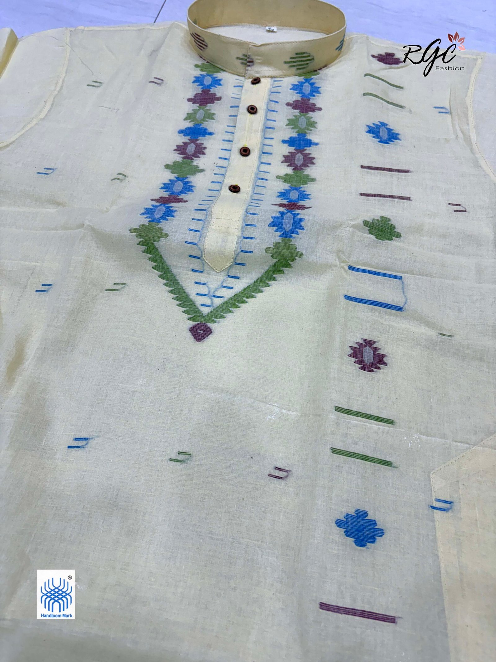 Cream Handloom Premuium Cotton Jamdani Panjabi for Men