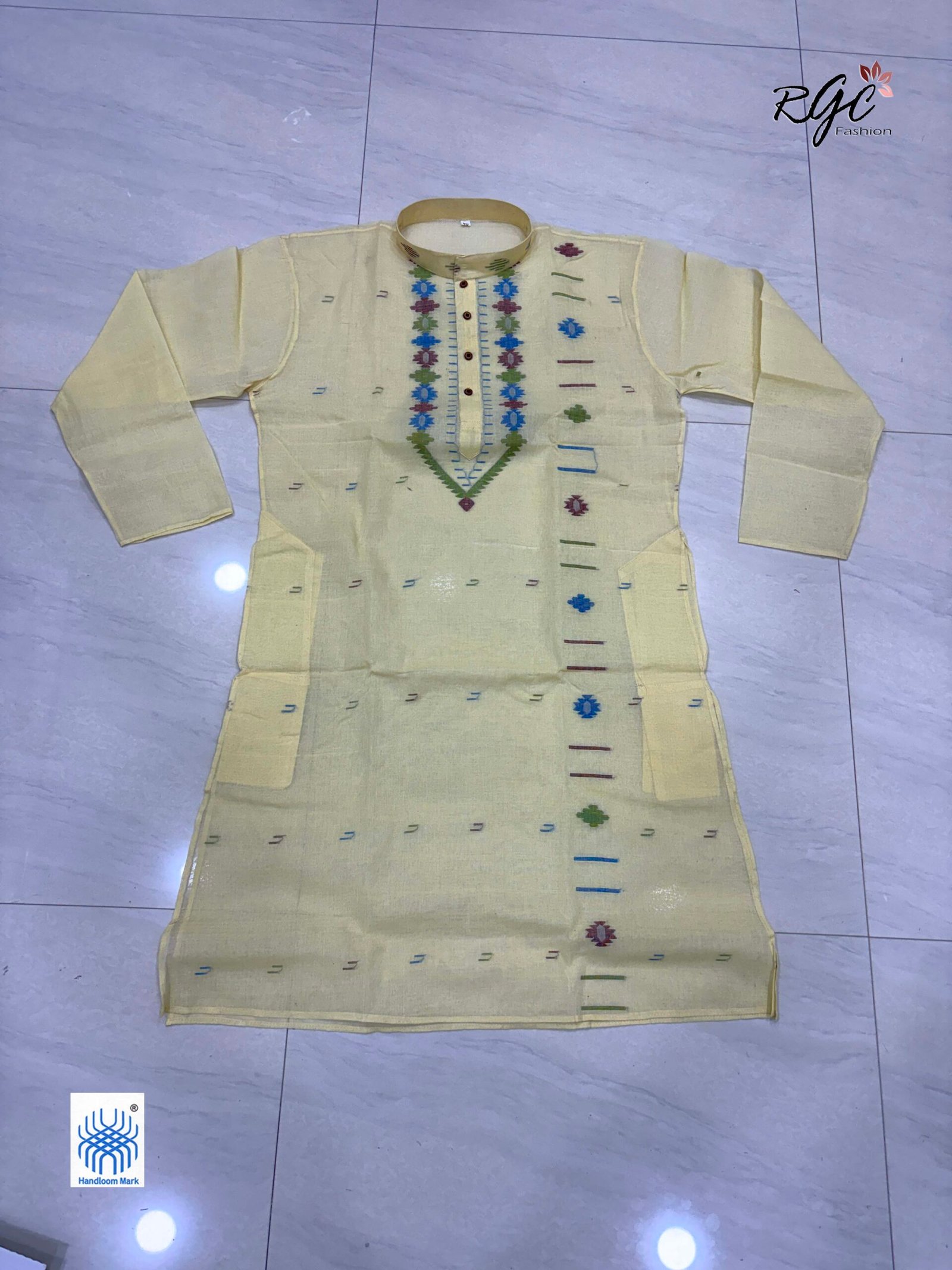Yellow Handloom Premuium Cotton Jamdani Panjabi for Men