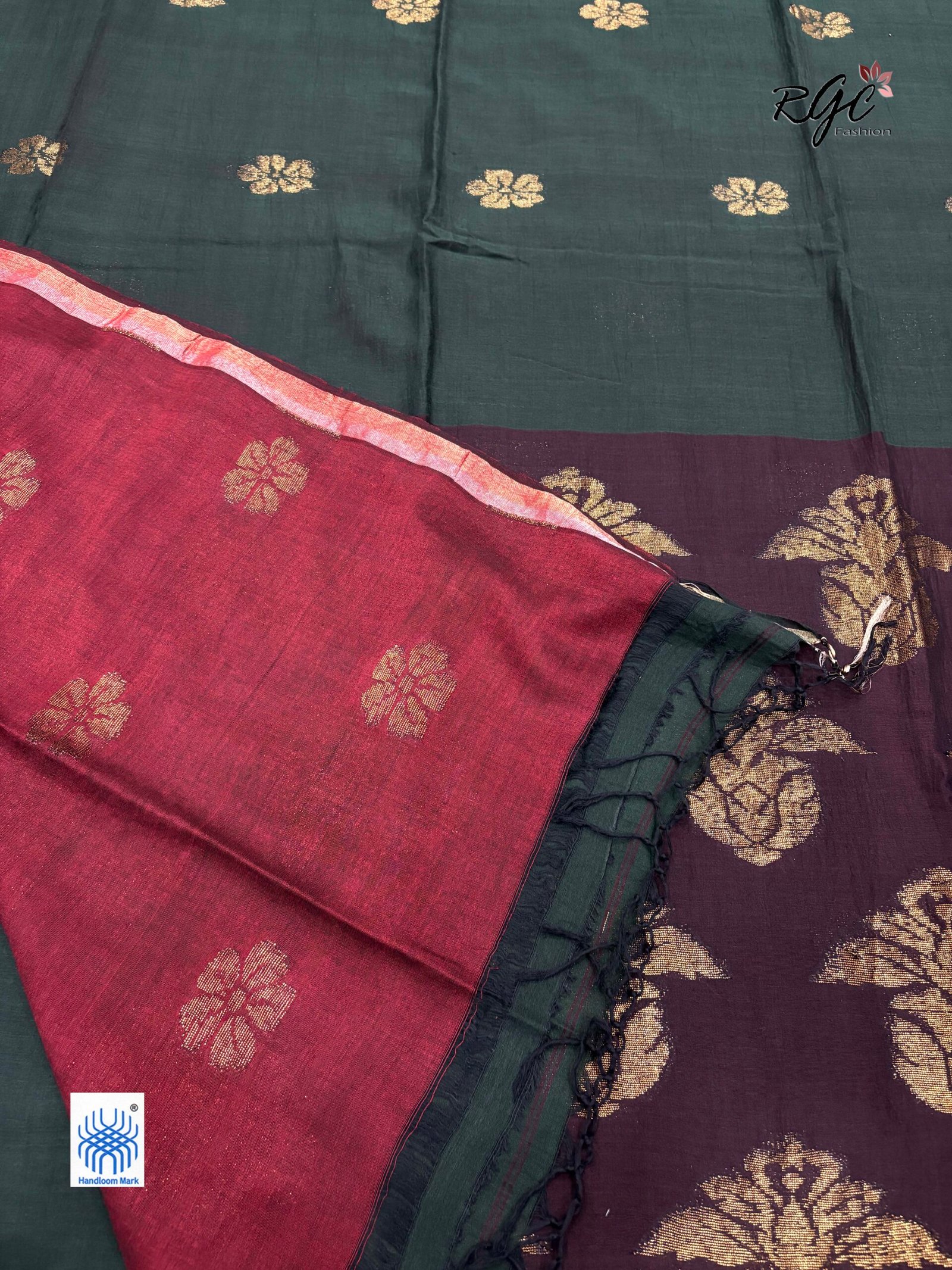 1 review for Dark Bottle Green Pure Bengal Cotton Jamdani Saree