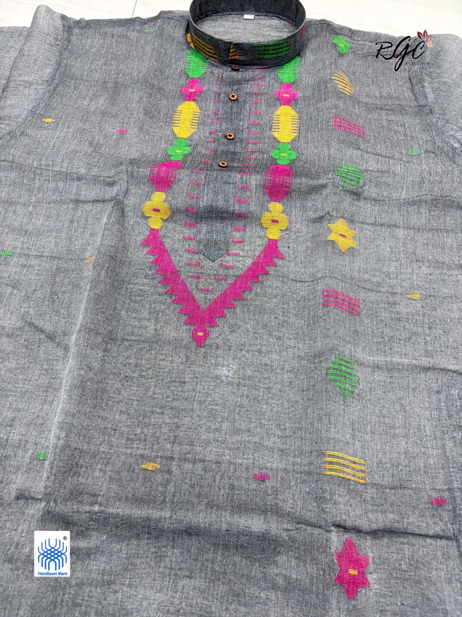 Gray Handloom Premuium Cotton Jamdani Panjabi for Men