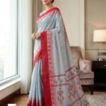 Light Gray Bengal Traditional Ikkat Handloom Jamdani Saree