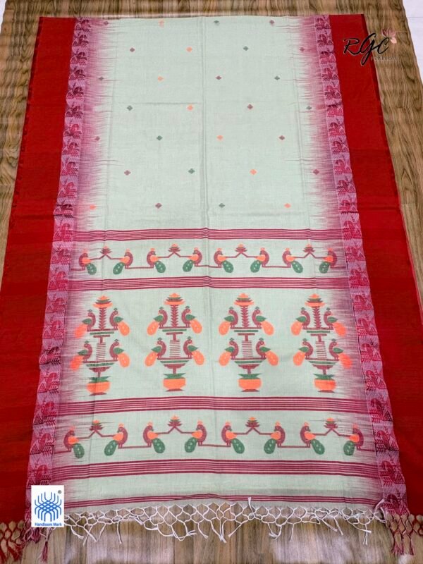 Pixie Green Bengal Traditional Ikkat Handloom Jamdani Saree