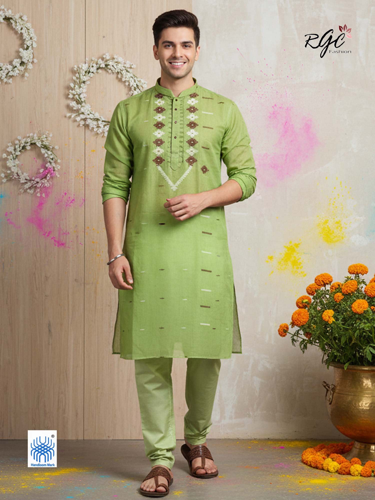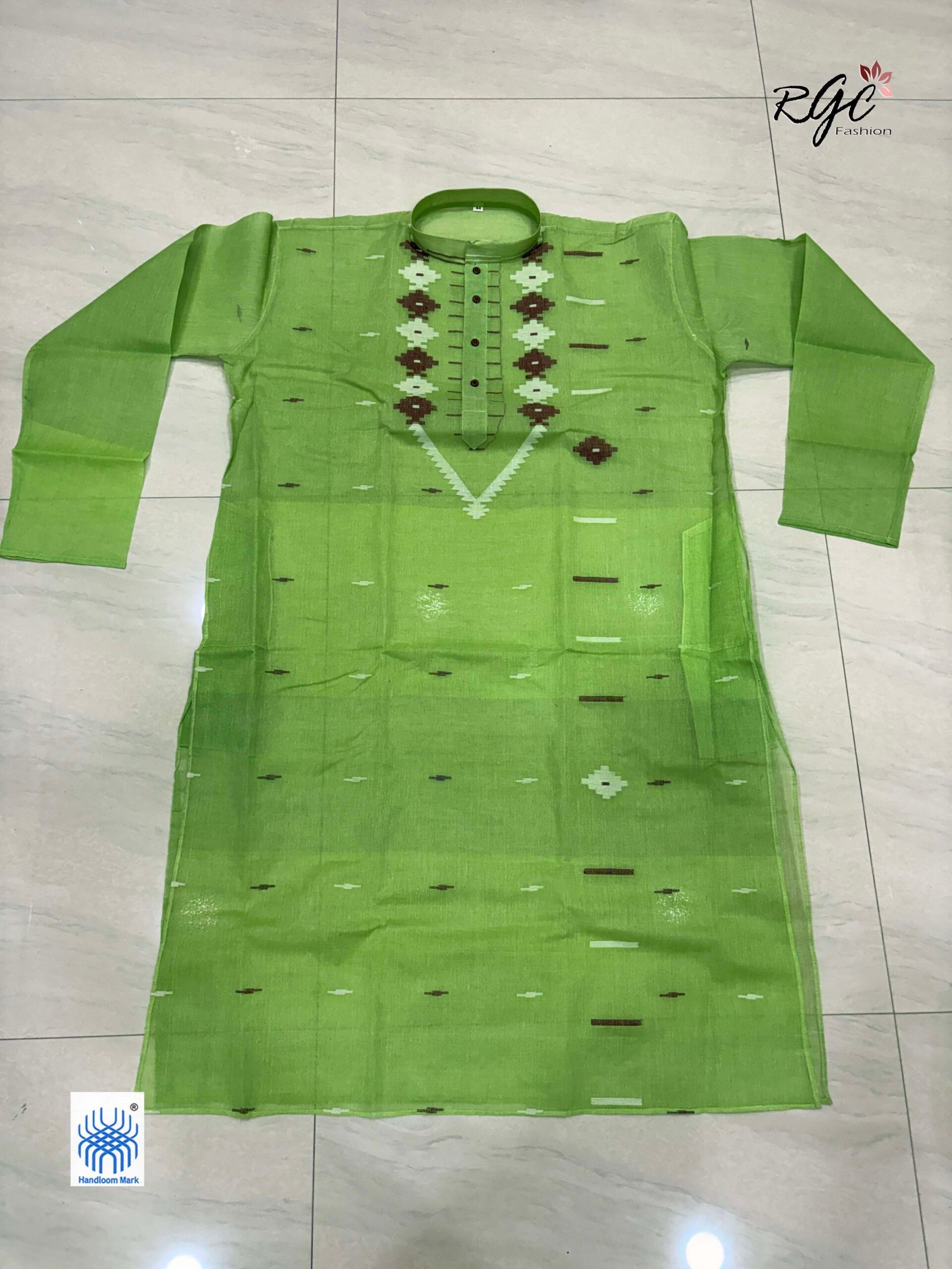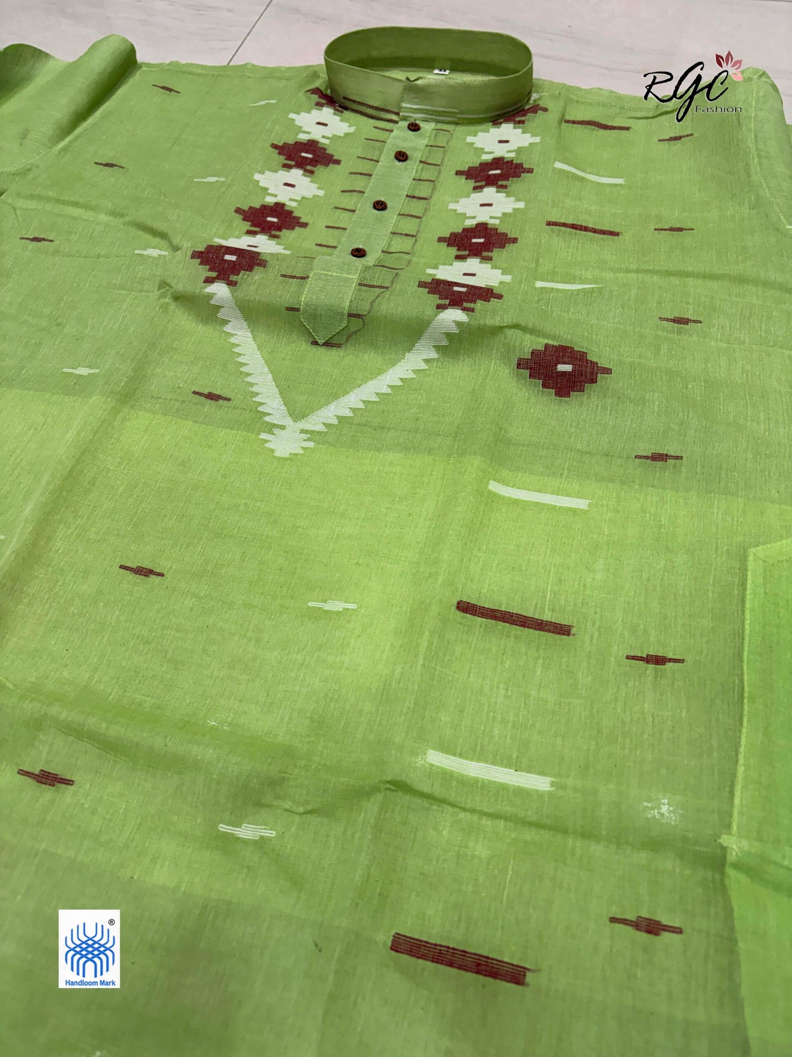 Light Green Handloom Premuium Cotton Jamdani Panjabi for Men