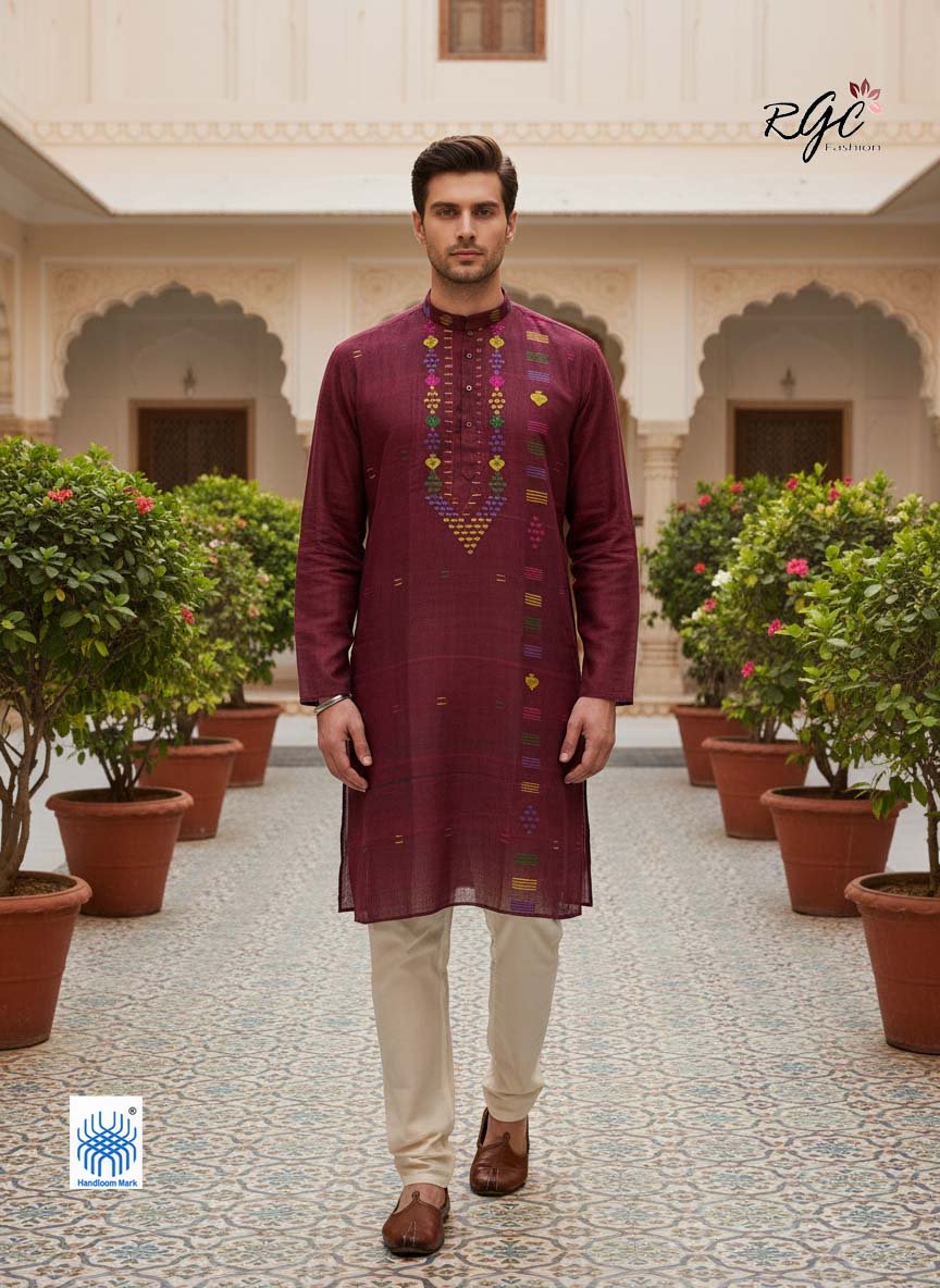 Red Handloom Premuium Cotton Jamdani Panjabi for Men