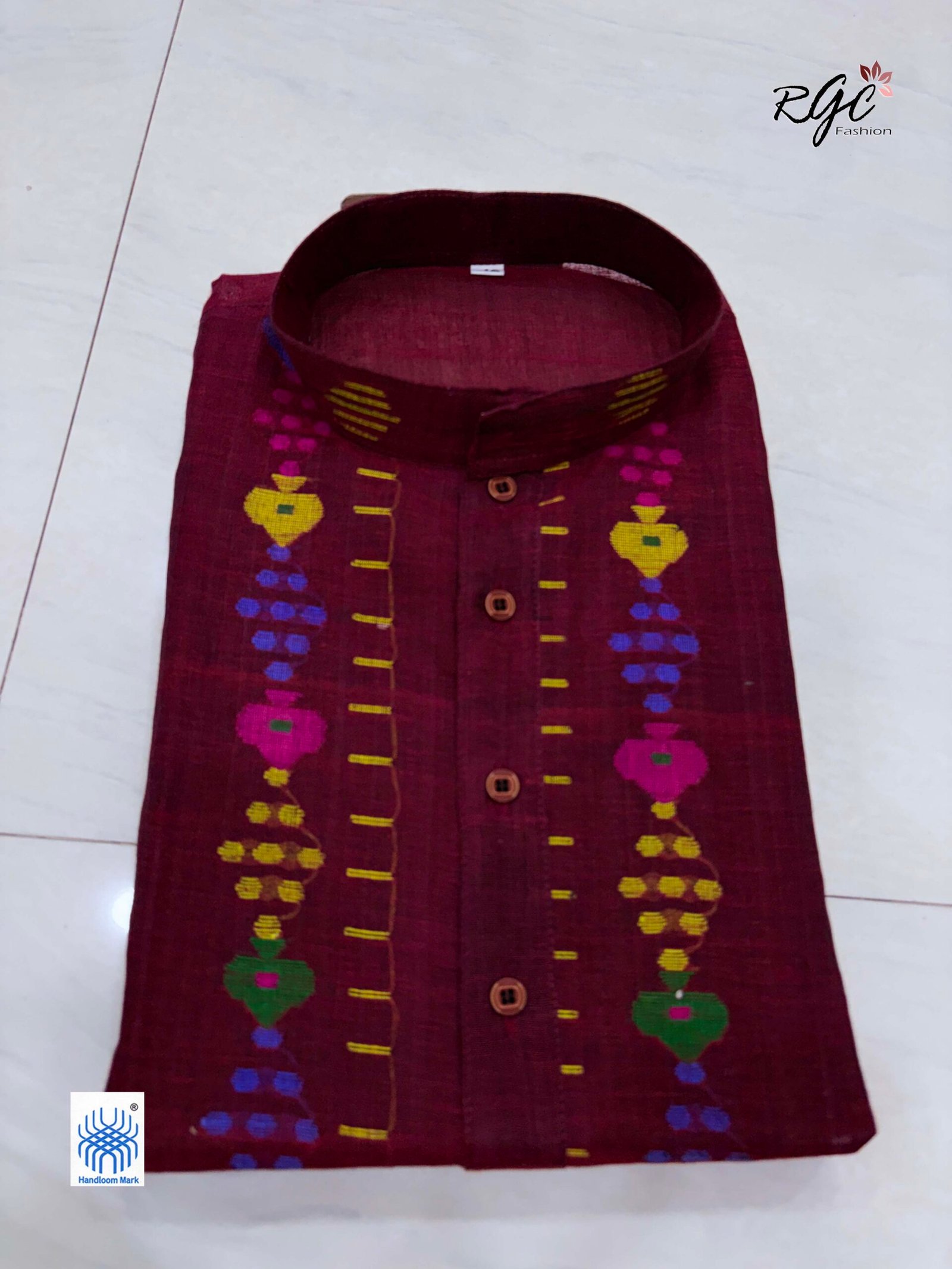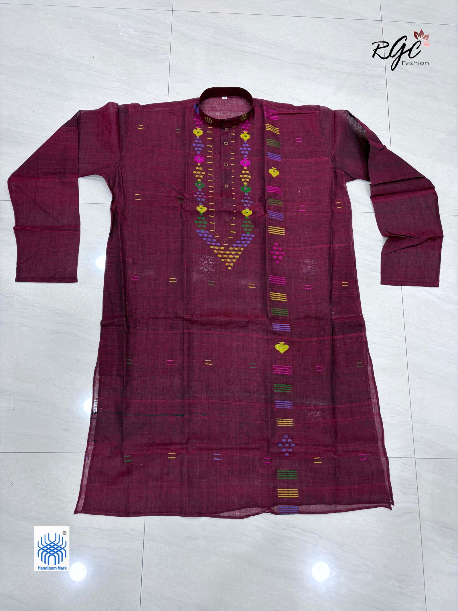 Maroon Handloom Premuium Cotton Jamdani Panjabi for Men