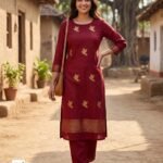 Maroon Premuium Mulmul Cotton Bird Jamdani Coord Suit Set