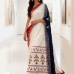 Off-White Bengal Traditional Handloom Chacks Jamdani Saree