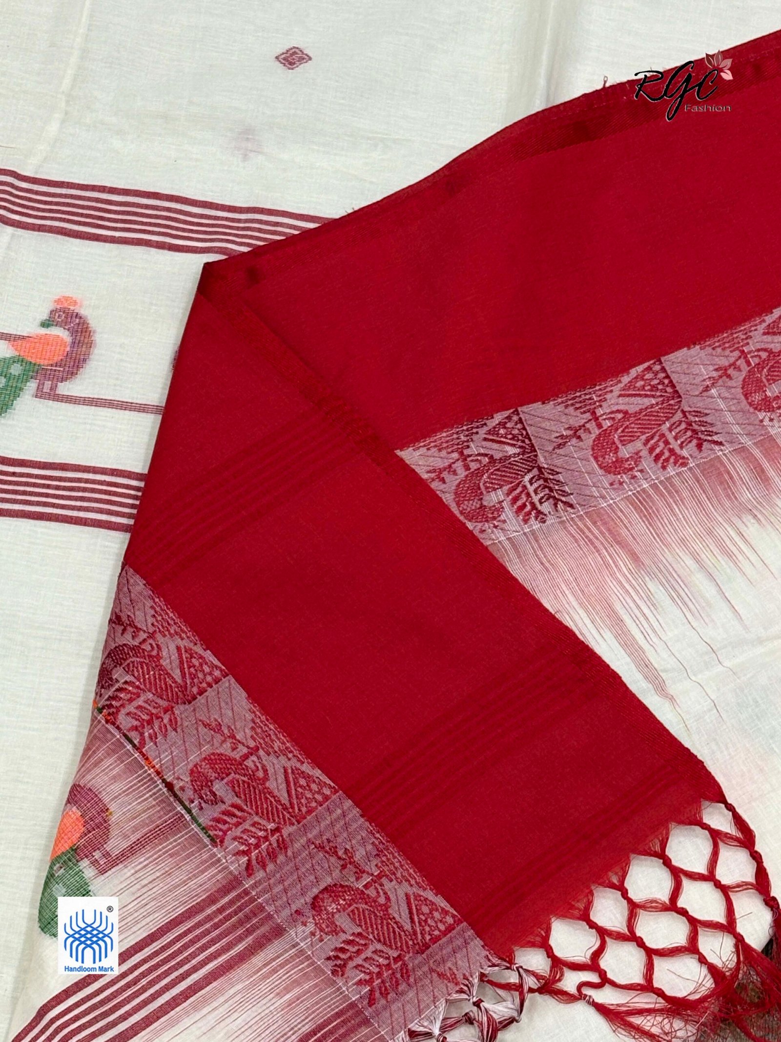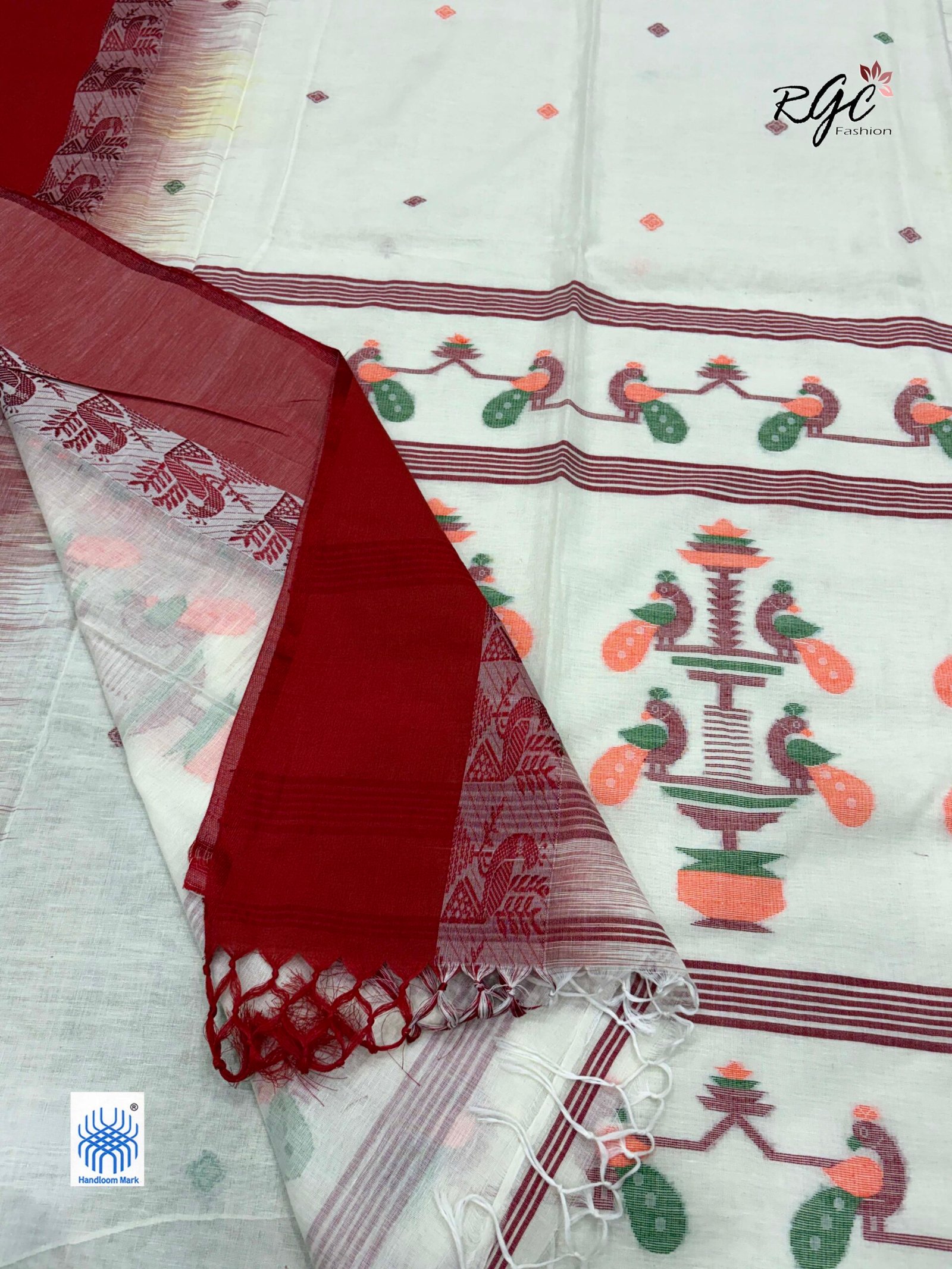 Off-White Bengal Traditional Ikkat Handloom Jamdani Saree