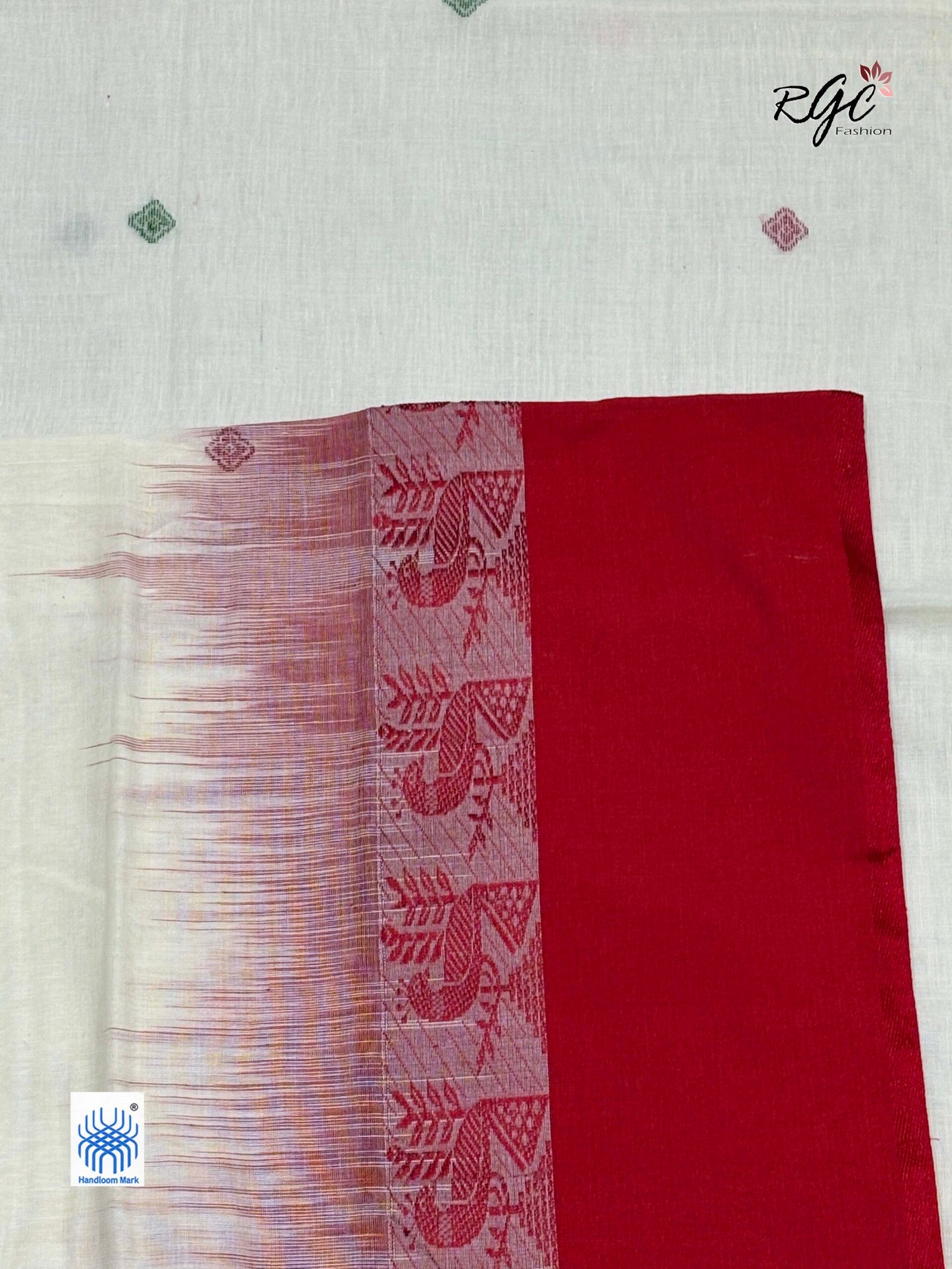 Dark Bottle Green Pure Bengal Cotton Jamdani Saree