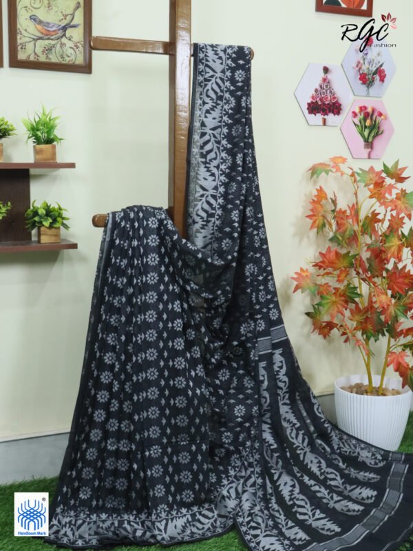 Black Cotton Allover Dhakai Jamdani Saree