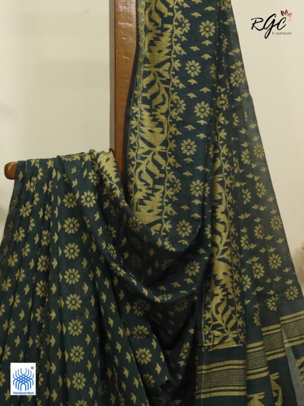 Bottle Green Cotton Allover Dhakai Jamdani Saree
