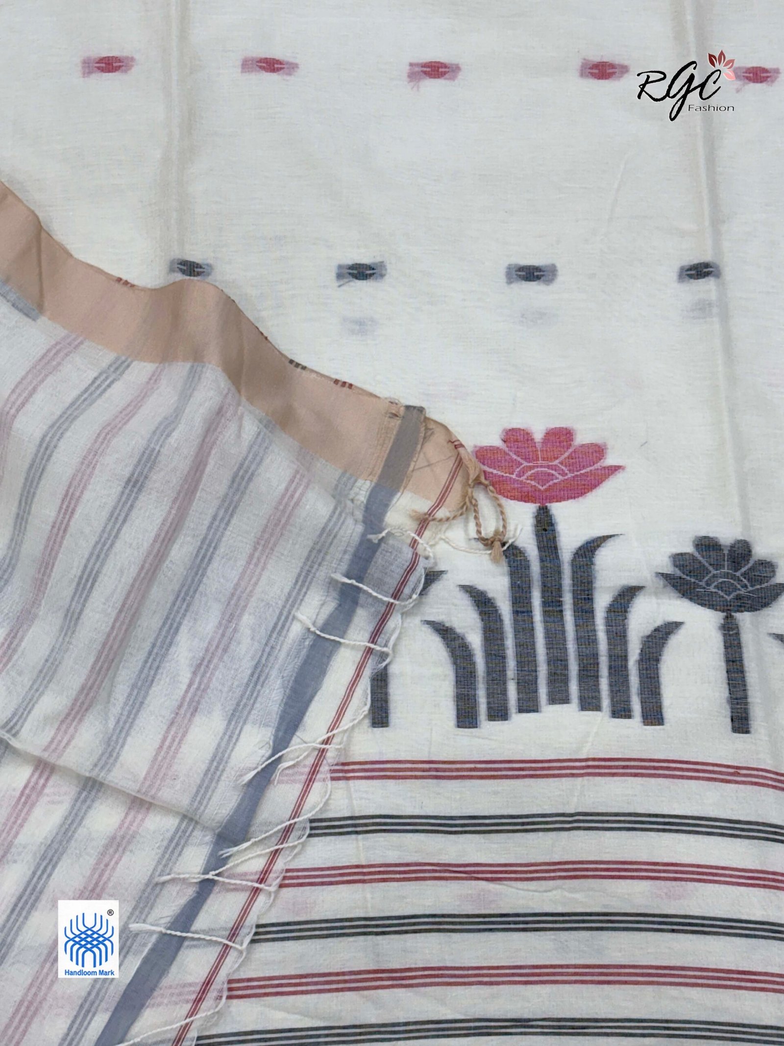 Charcole Handloom Khadi Cotton Dhakai Jamdani Saree