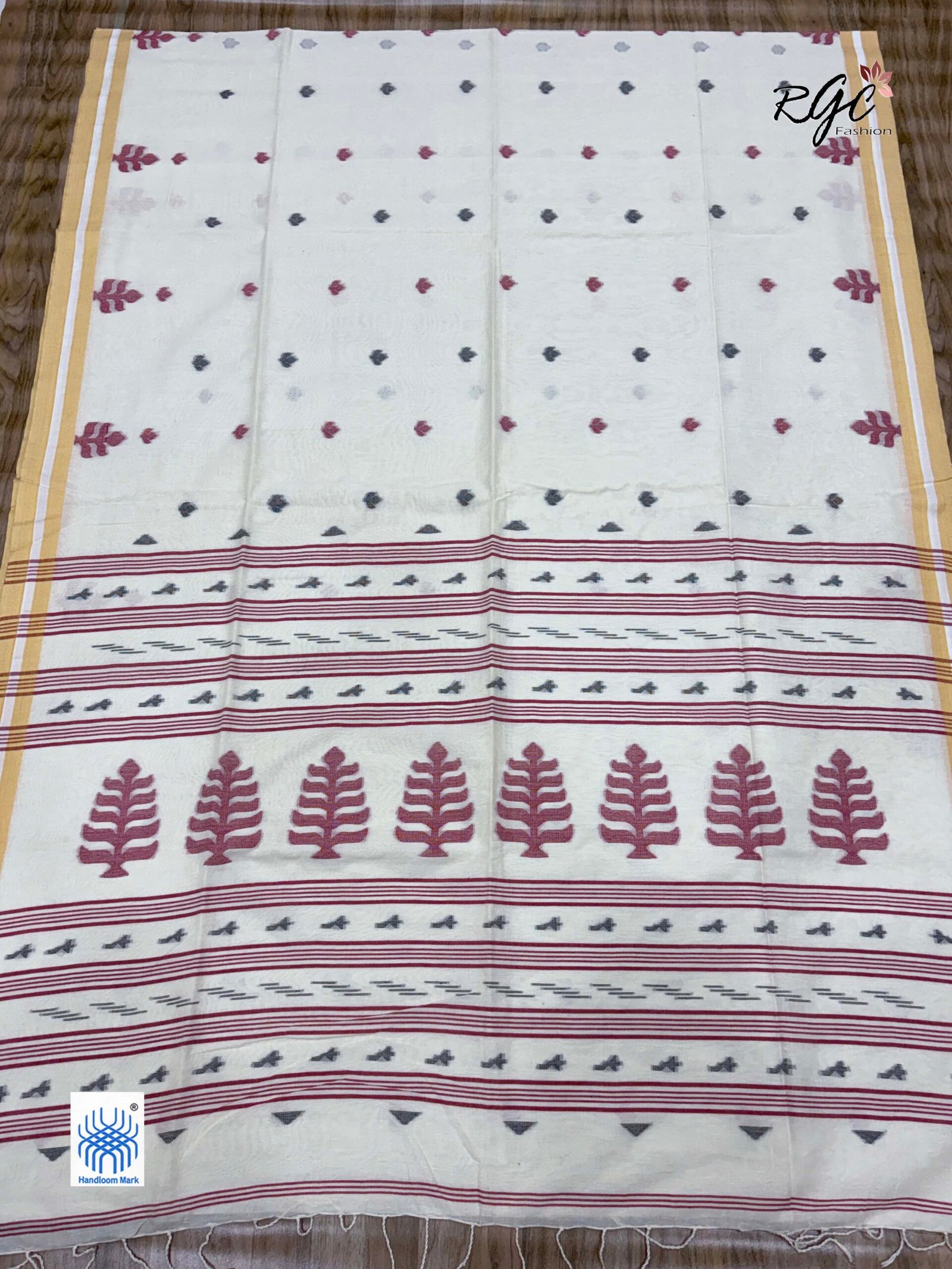 Charcole Handloom Khadi Cotton Dhakai Jamdani Saree