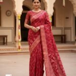 Dark Red Handloom Resham Matka Allover Jamdani saree