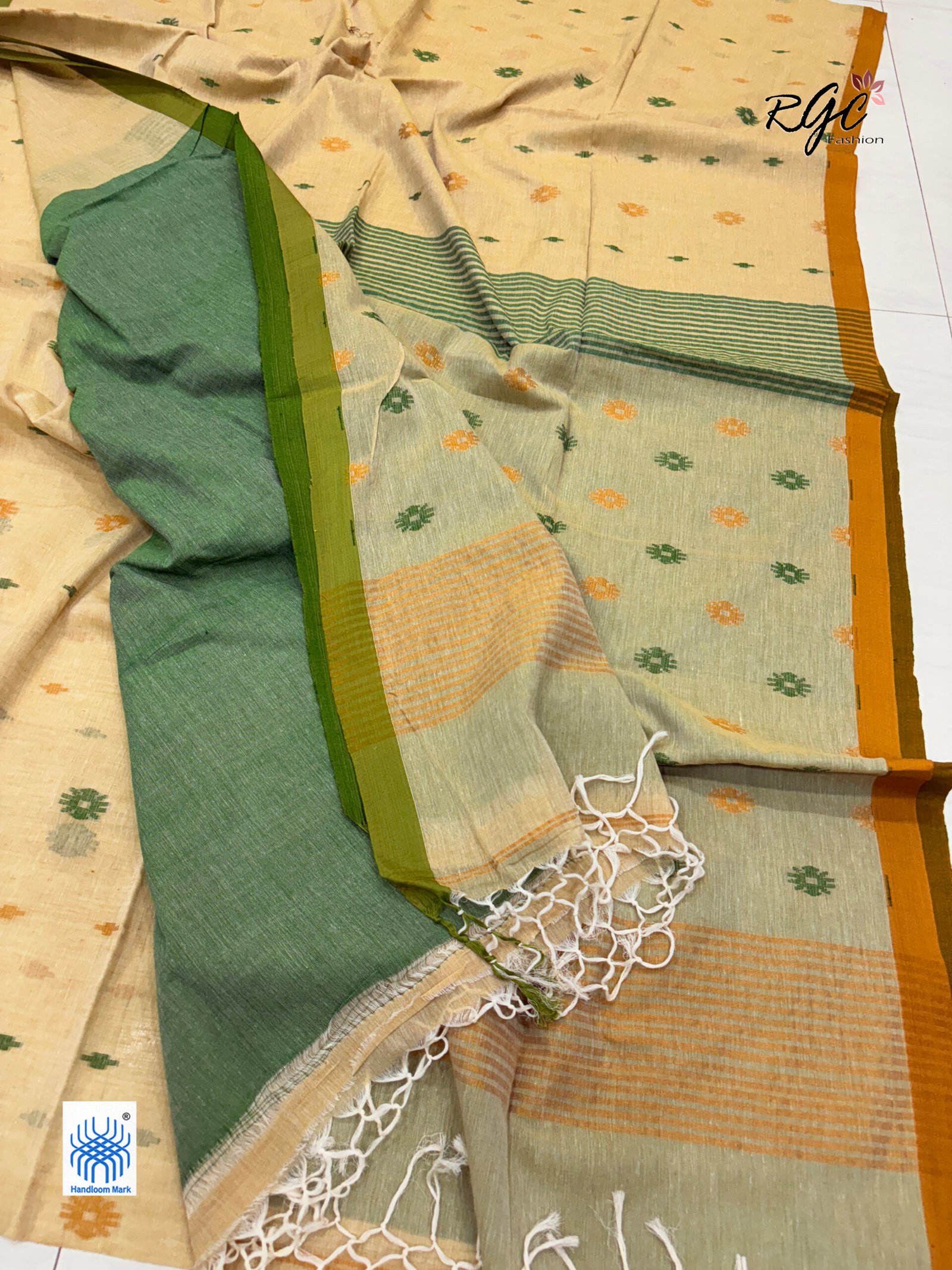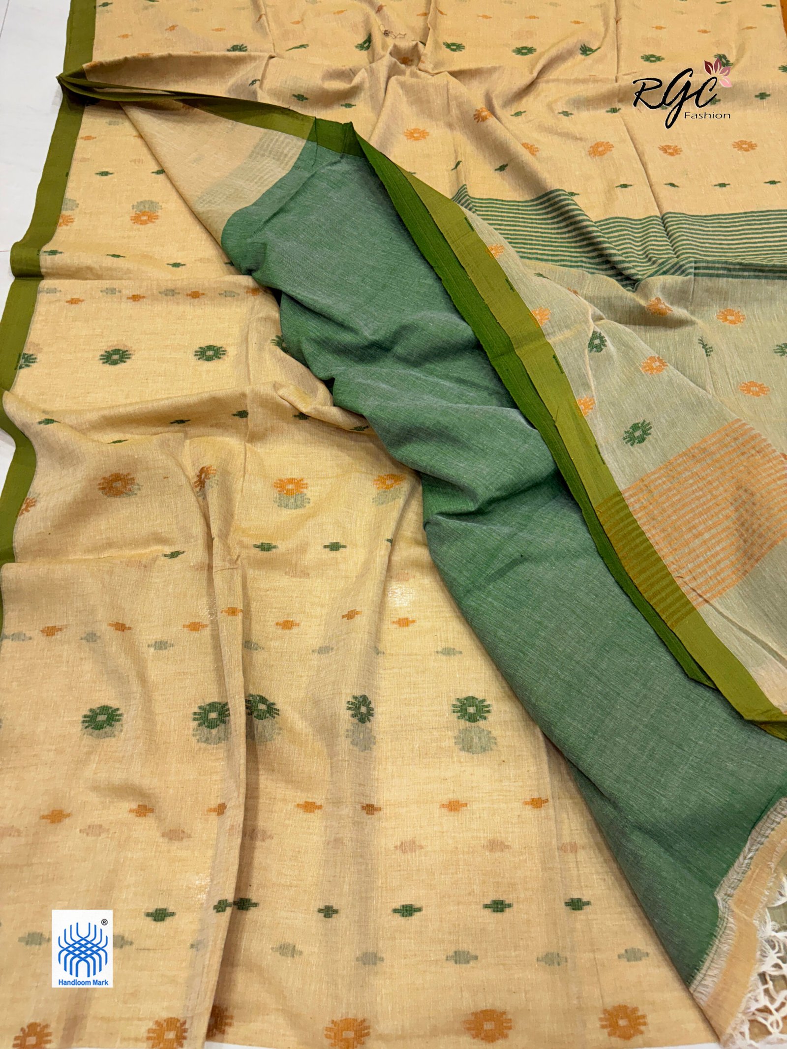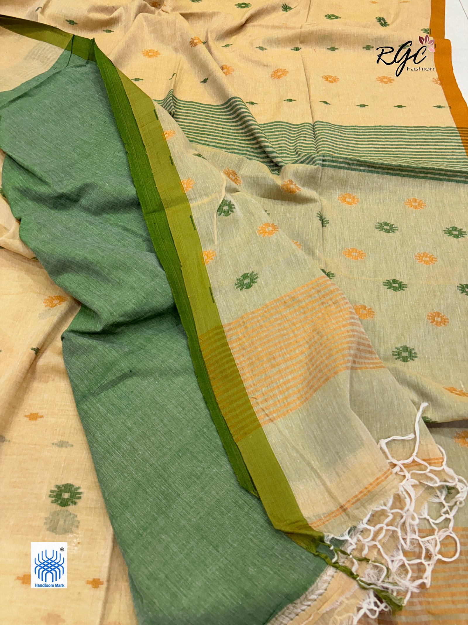 Beige Handloom Mulmul Cotton Dhakai Jamdani Saree
