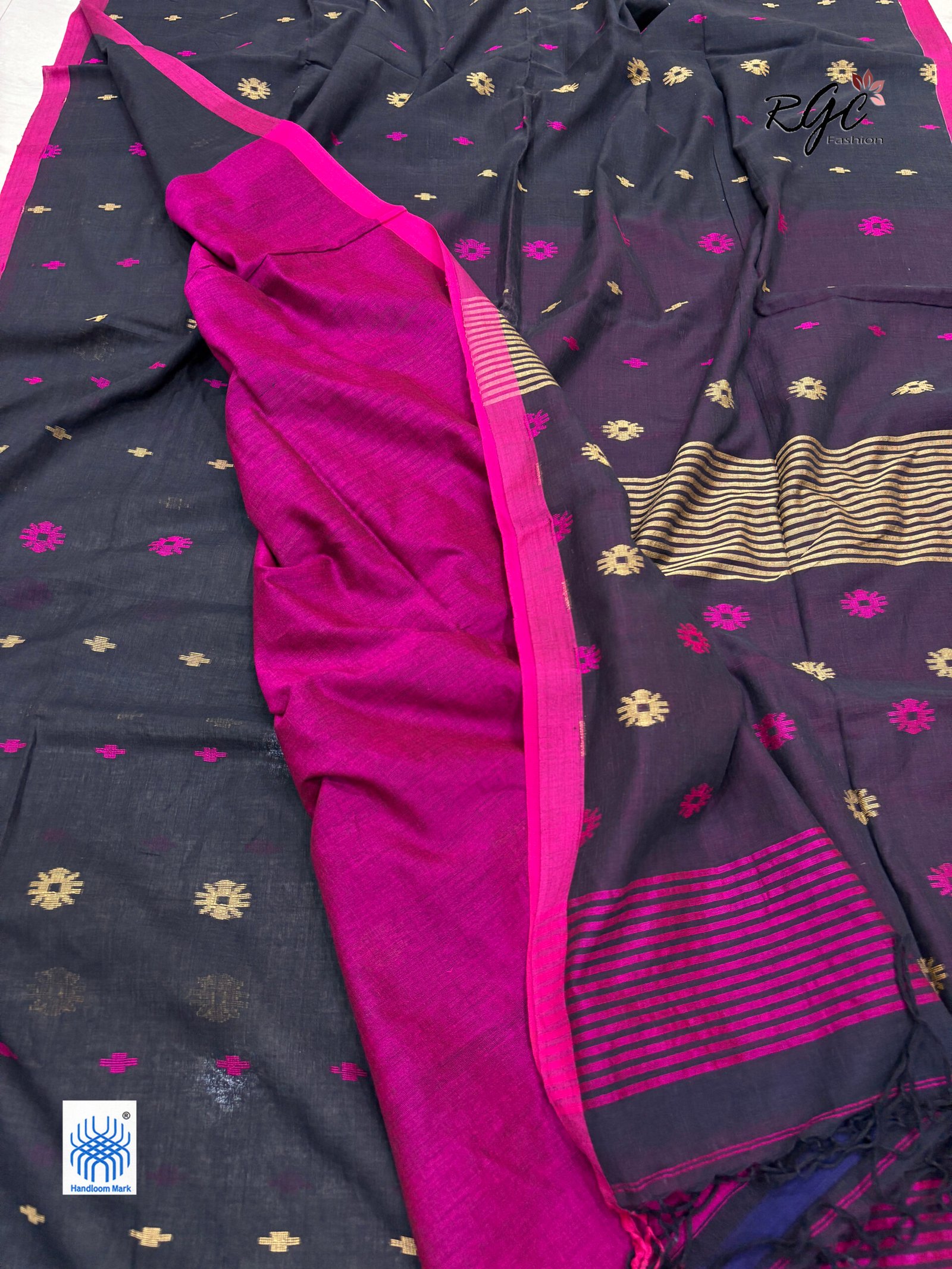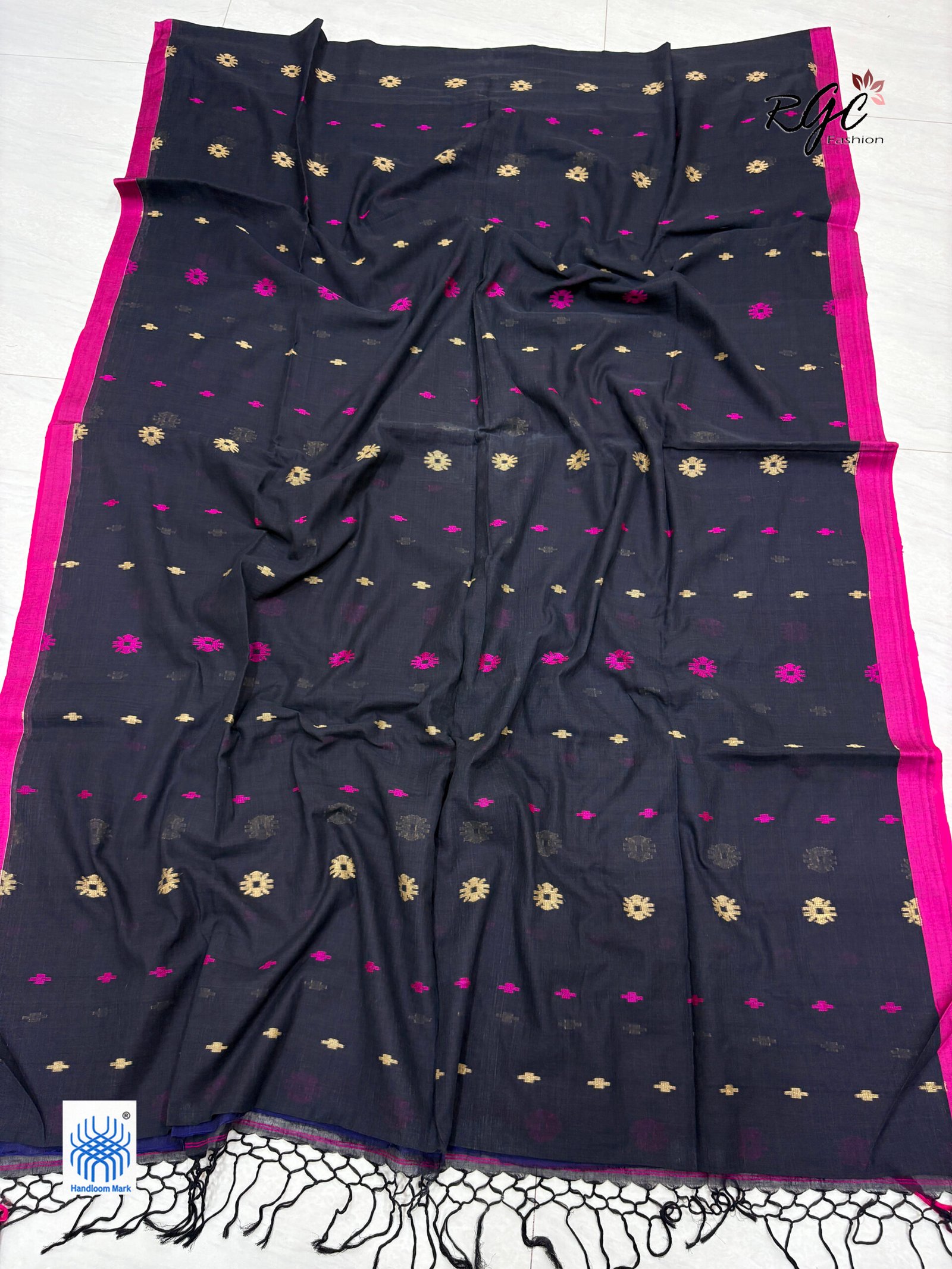 Black Handloom Mulmul Cotton Dhakai Jamdani Saree