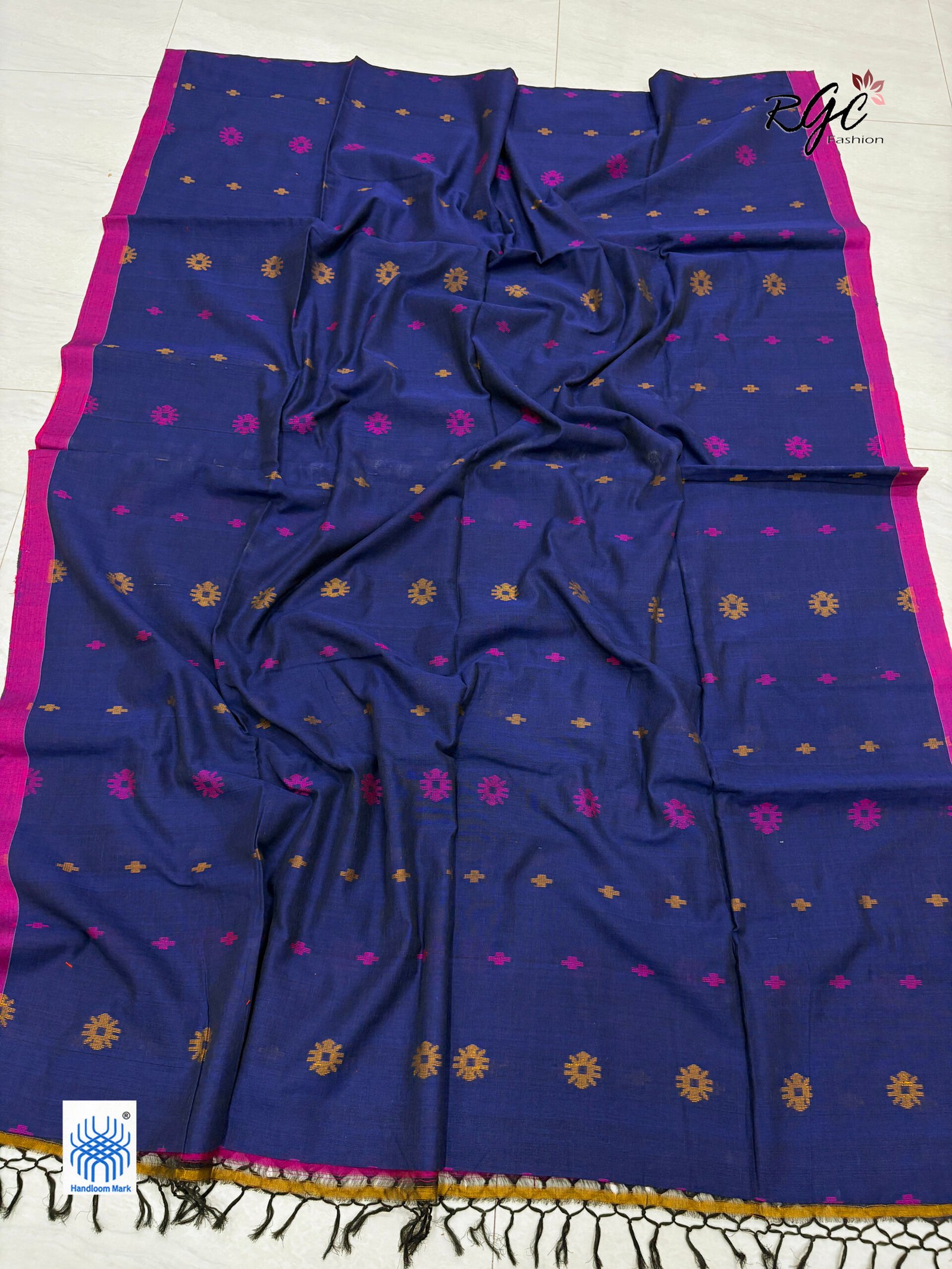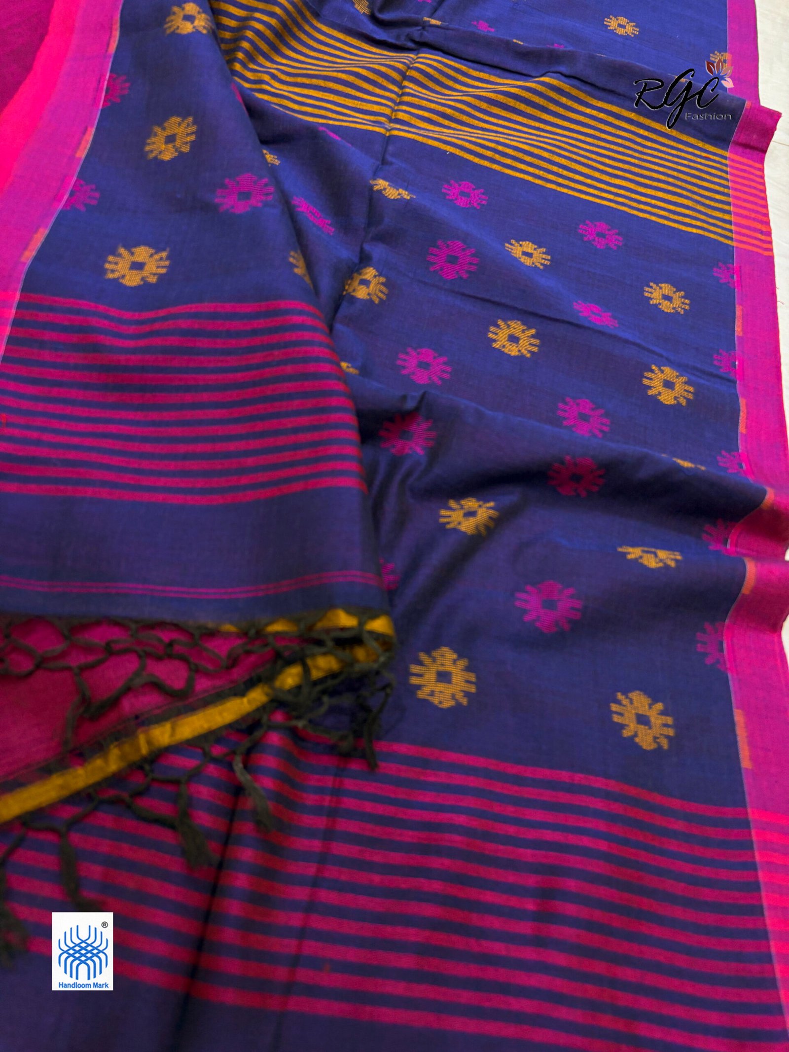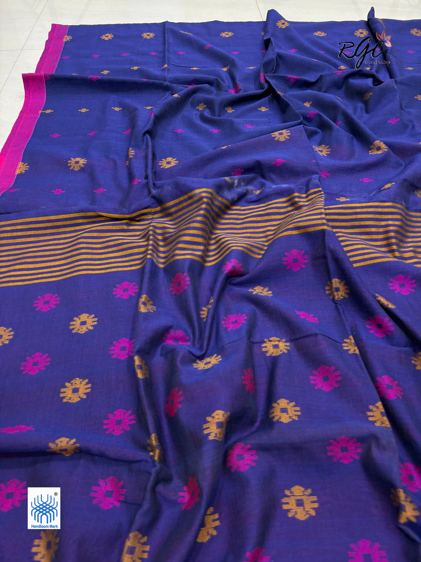 Blue Handloom Mulmul Cotton Dhakai Jamdani Saree