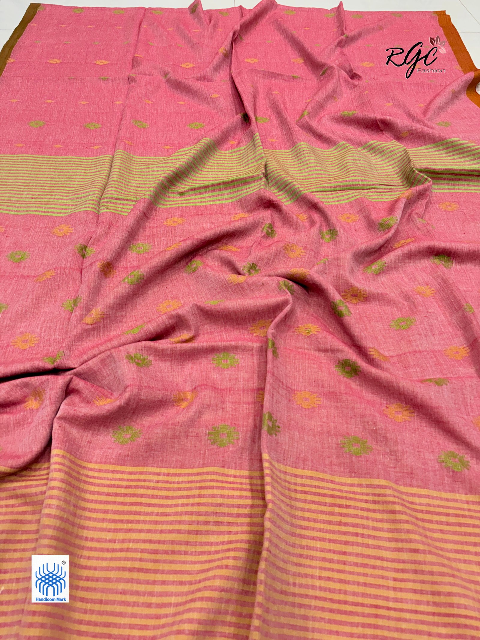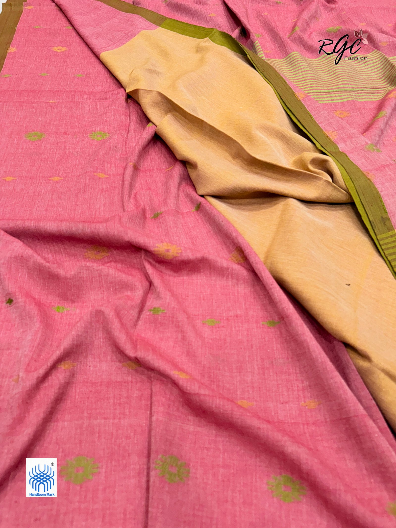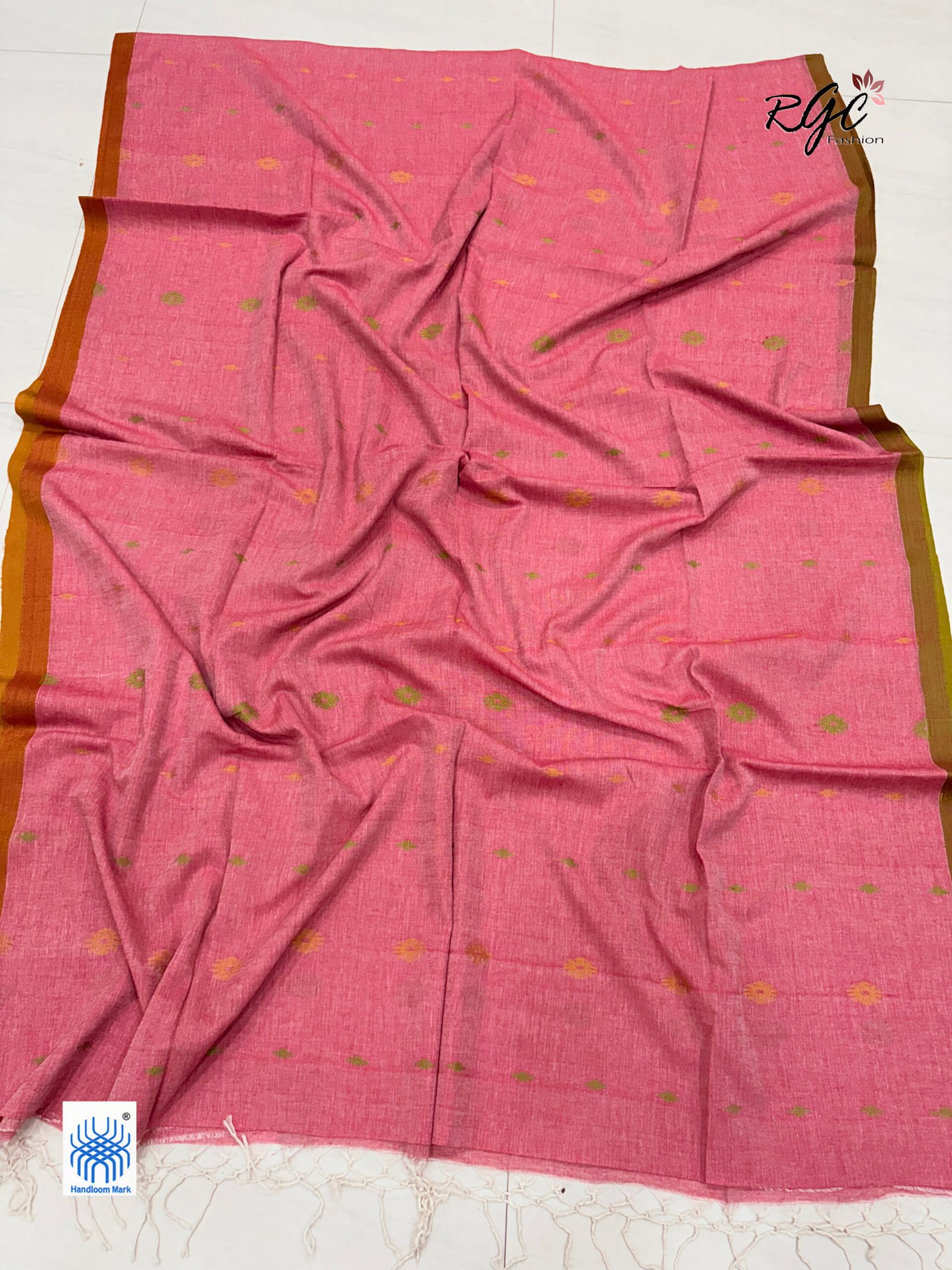 Light Red Handloom Mulmul Cotton Dhakai Jamdani Saree