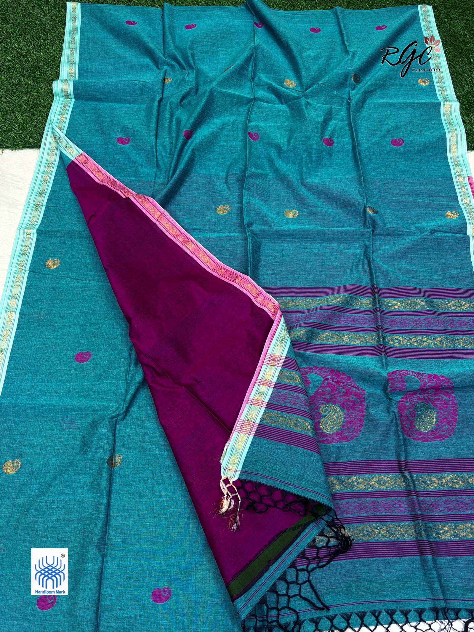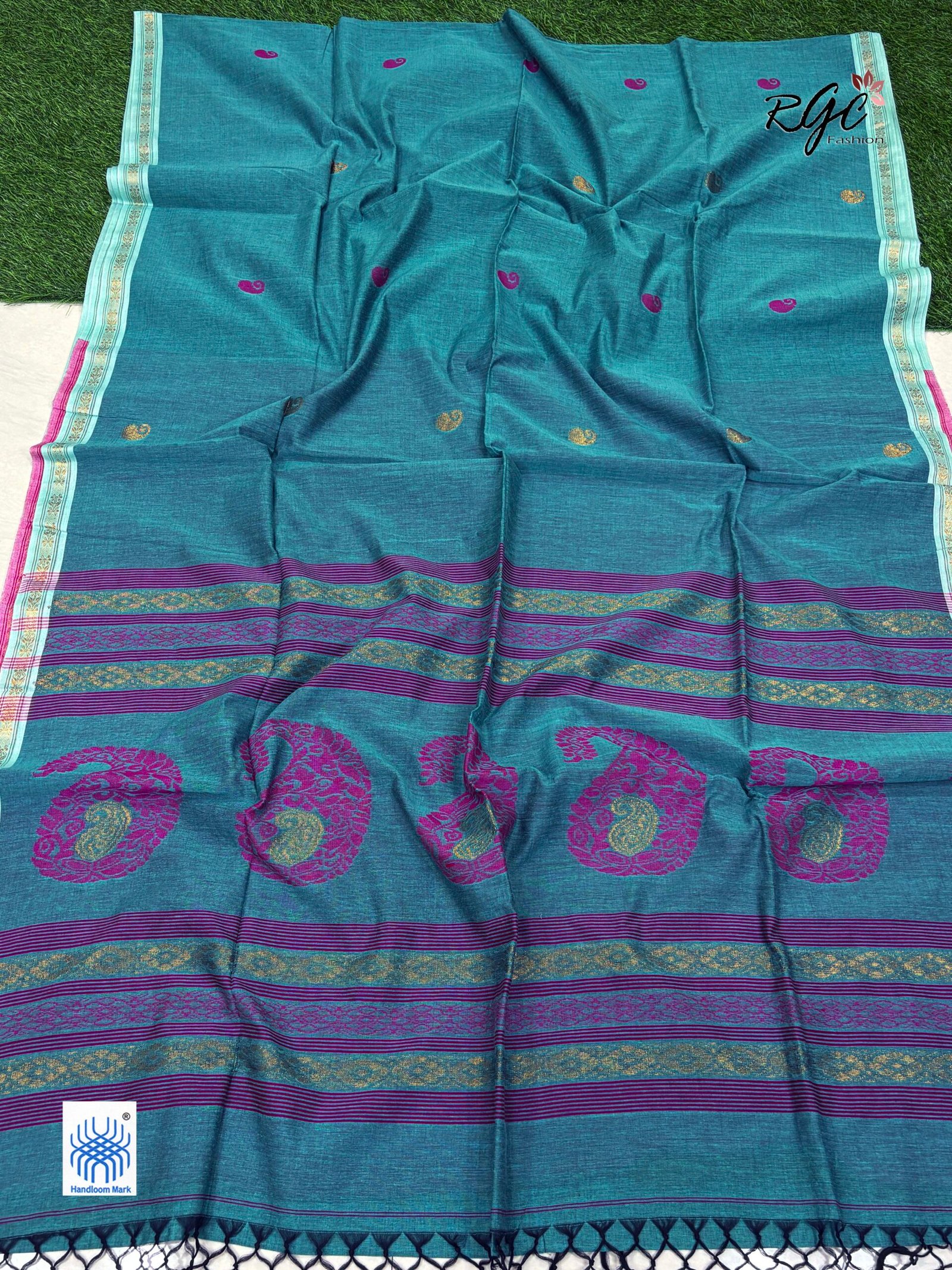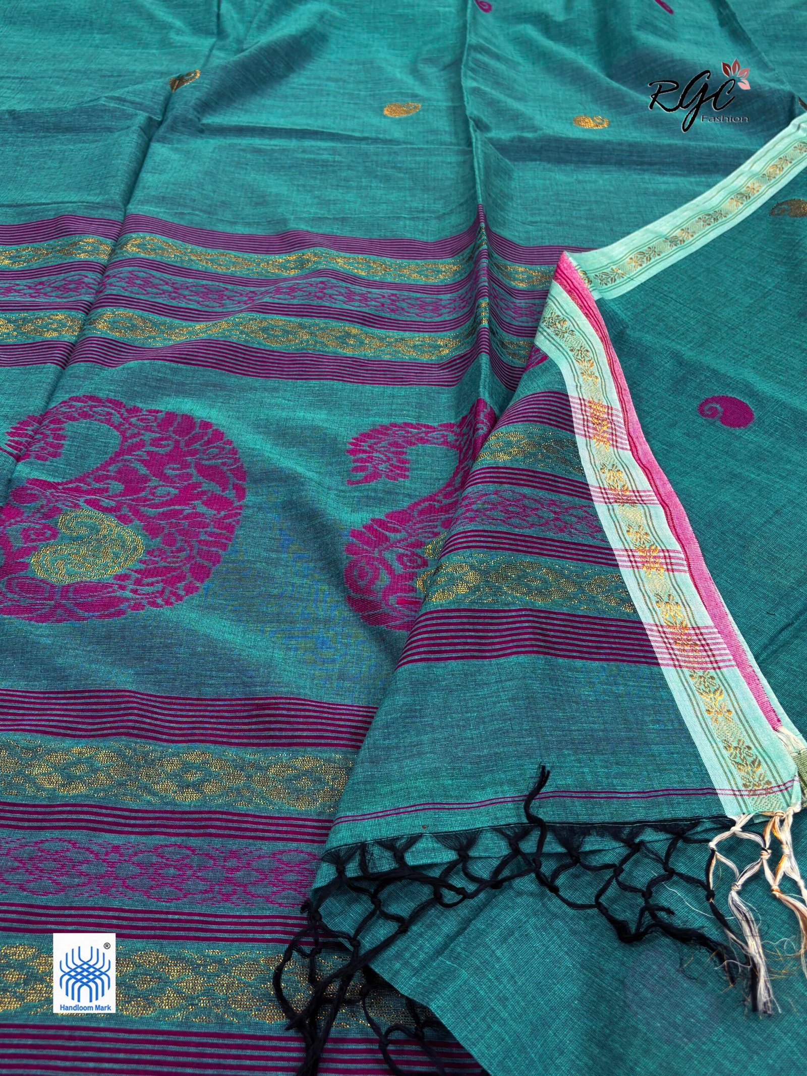 Light Ferozi Handloom Premium Khadi Cotton Jamdani Saree