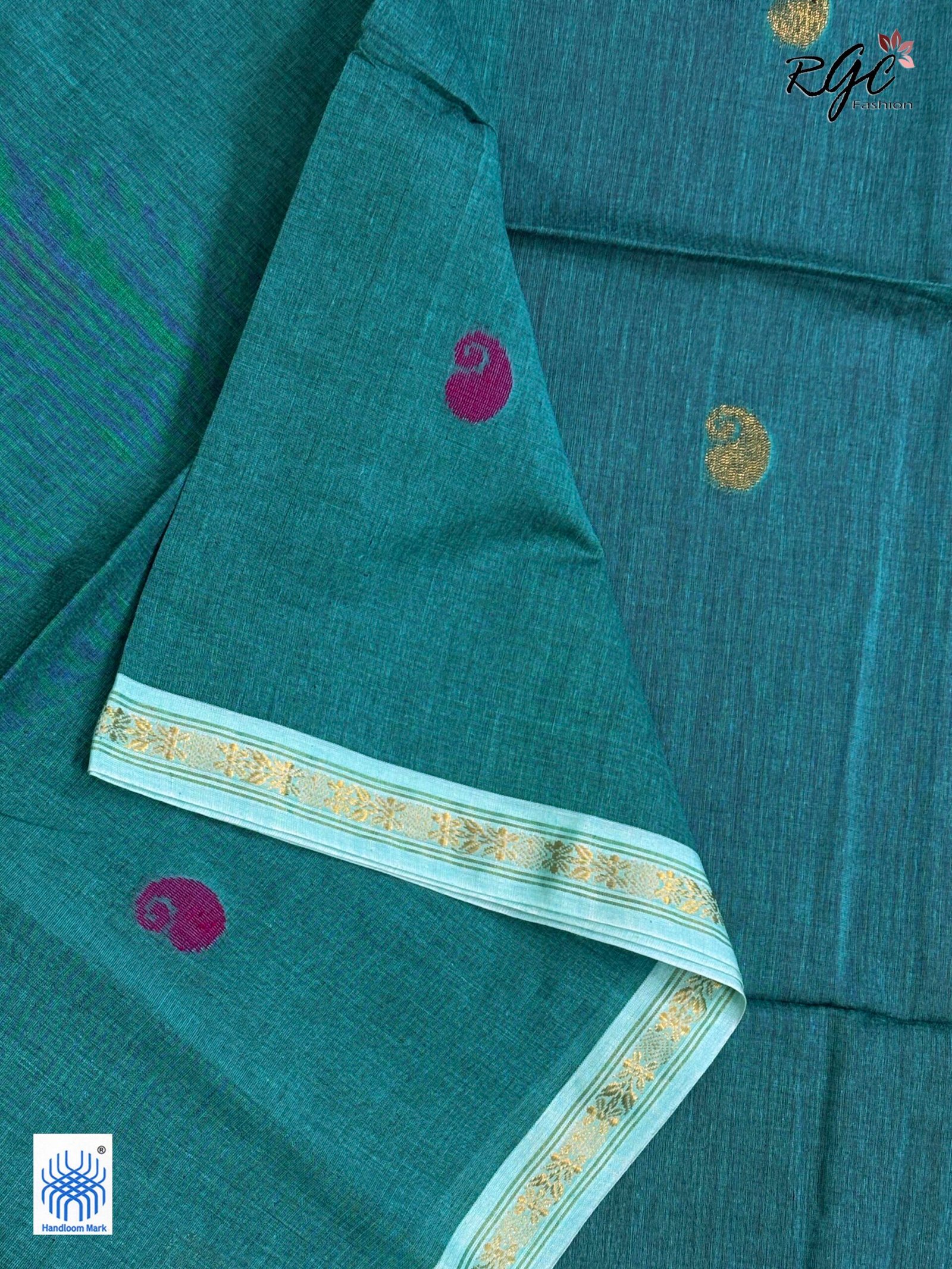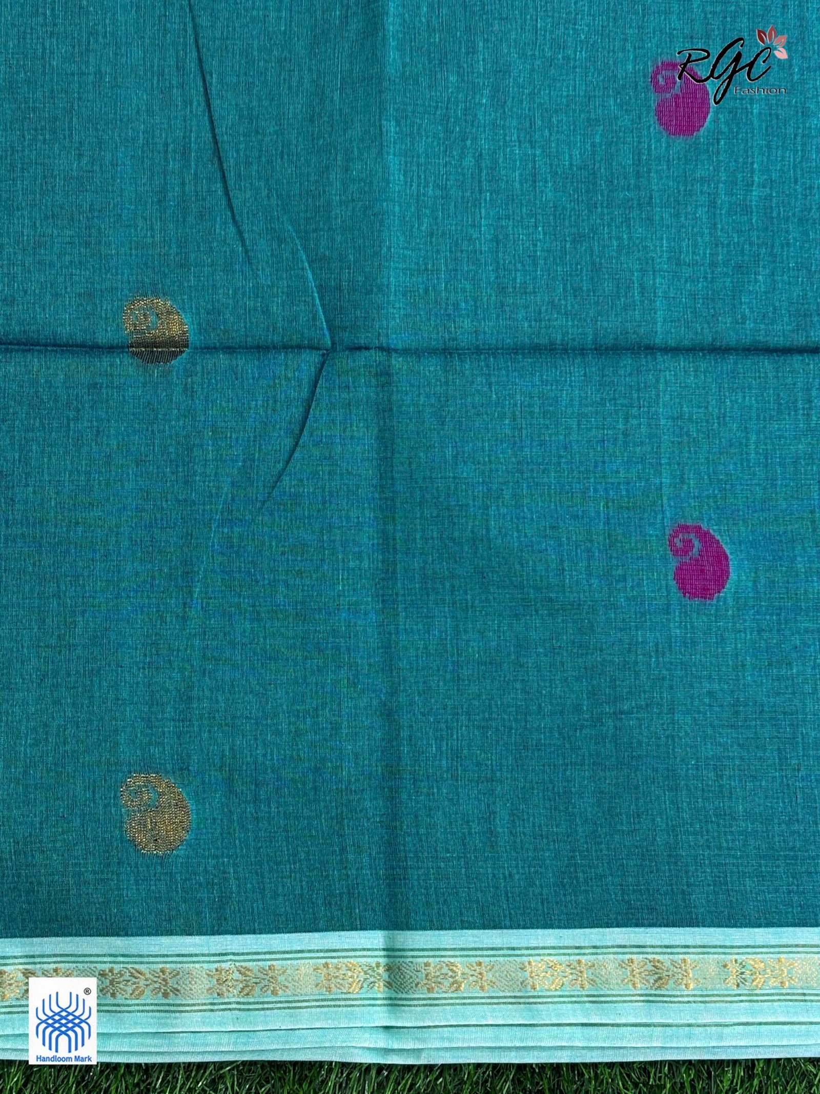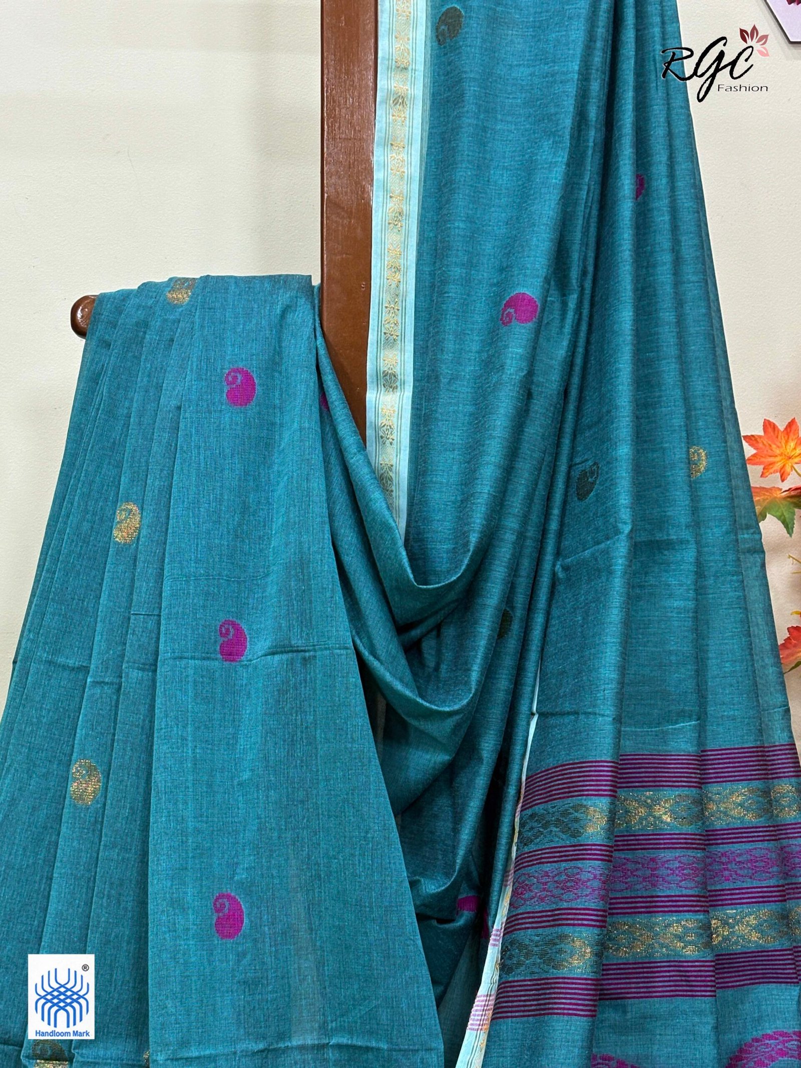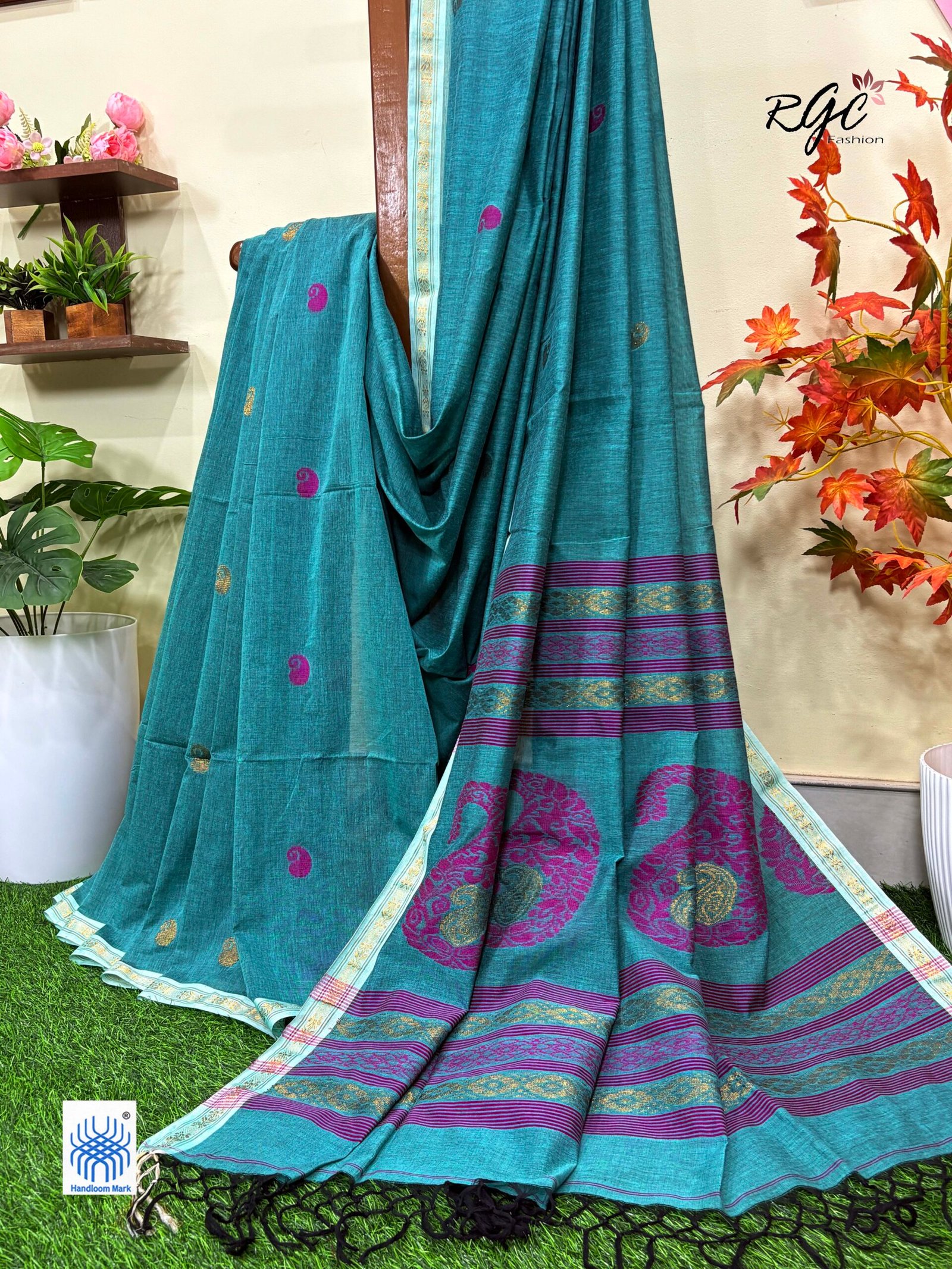 Light Ferozi Handloom Premium Khadi Cotton Jamdani Saree