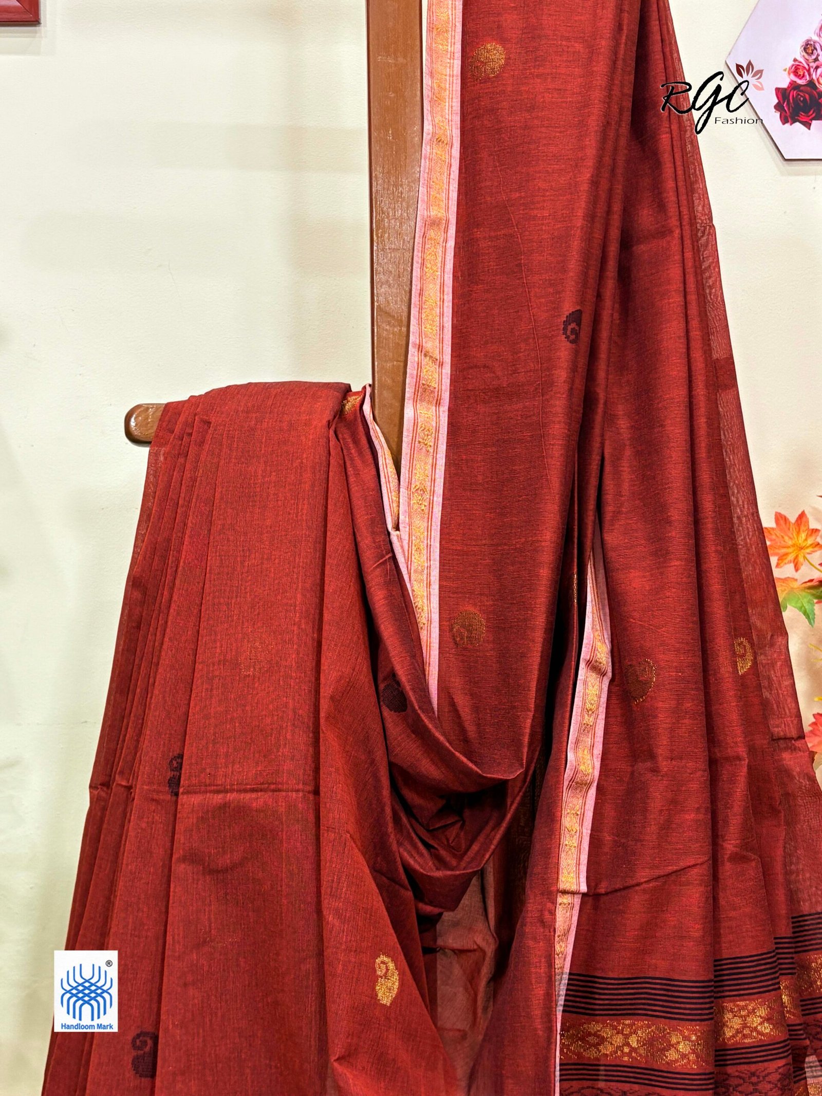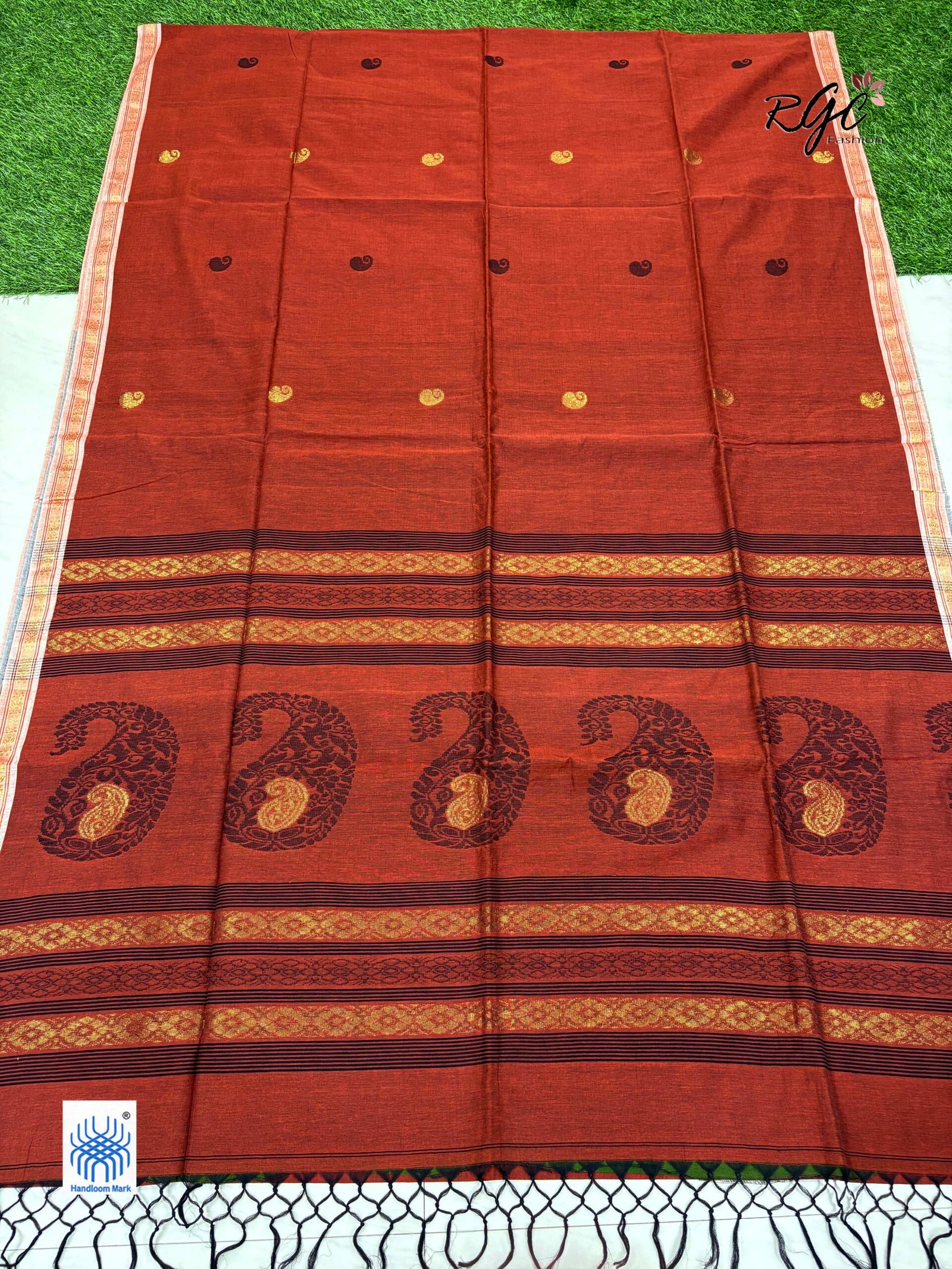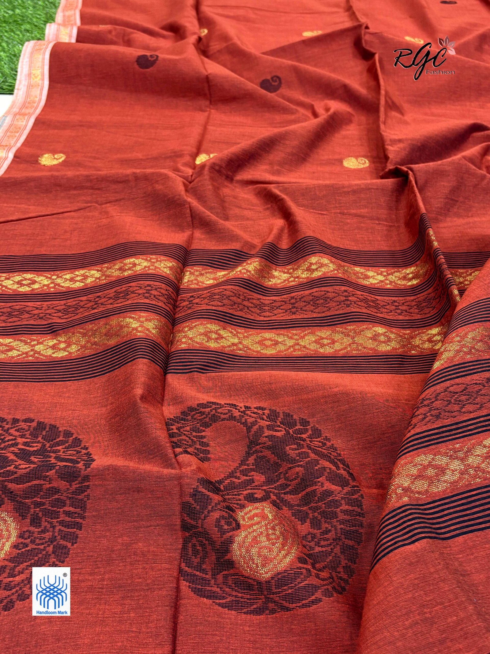 Rust Handloom Premium Khadi Cotton Jamdani Saree